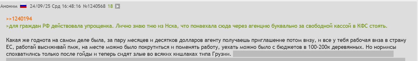 >>1240663 Я когда на визараны хожу, то иногда спрашиваю у людей, сколько они тут в Сербии живут. Почти все, как и я, совсем недавно заехали и живут тут от месяца до полугода. Много кто перекатывается из Грузии и Армении в Белград нынче.