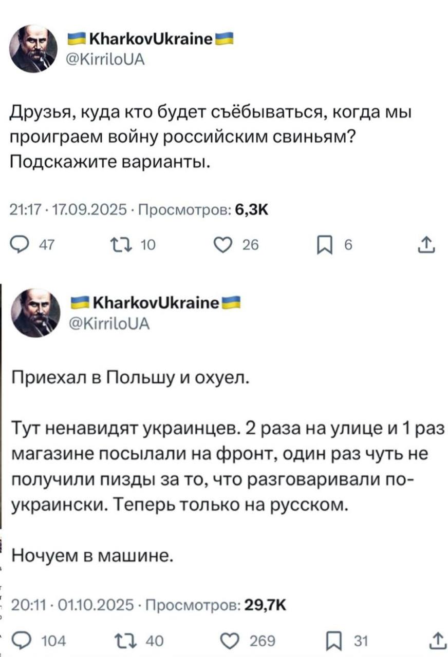 >>1249237 Потому что тупые и ведутся на пропаганду РФ, которой думаю не сильно много. А с другой стороны политики практически все, кроме самых левых решили, что на украинцев можно все беды повесить и отвернуть фокус внимания от реальных проблем. А когда у тебя что Туск, что Браун, что киболь говорят нонстоп какие х-мены хуевые, то волей не волей поведешься. Мне в целом было бы похуй, потому что я чипс. Но когда рот открываешь, ты волей не волей становишься украинцем, и ловишь косые взгляды, а это напрягает. Короче ебланы одним словом с критическим мышлением как у хлебушка но не все разумеется