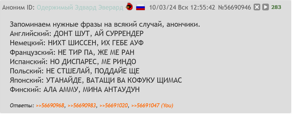 >>1255509 Это давнее развлечение глубинариев, пытаться пендосам рассказать про наши мемы, в тиктоке такое часто, и там куча глубинариев в комментах между собой на английском говорит, не думаю что хоть один пендос увидел хоть одно такое видео