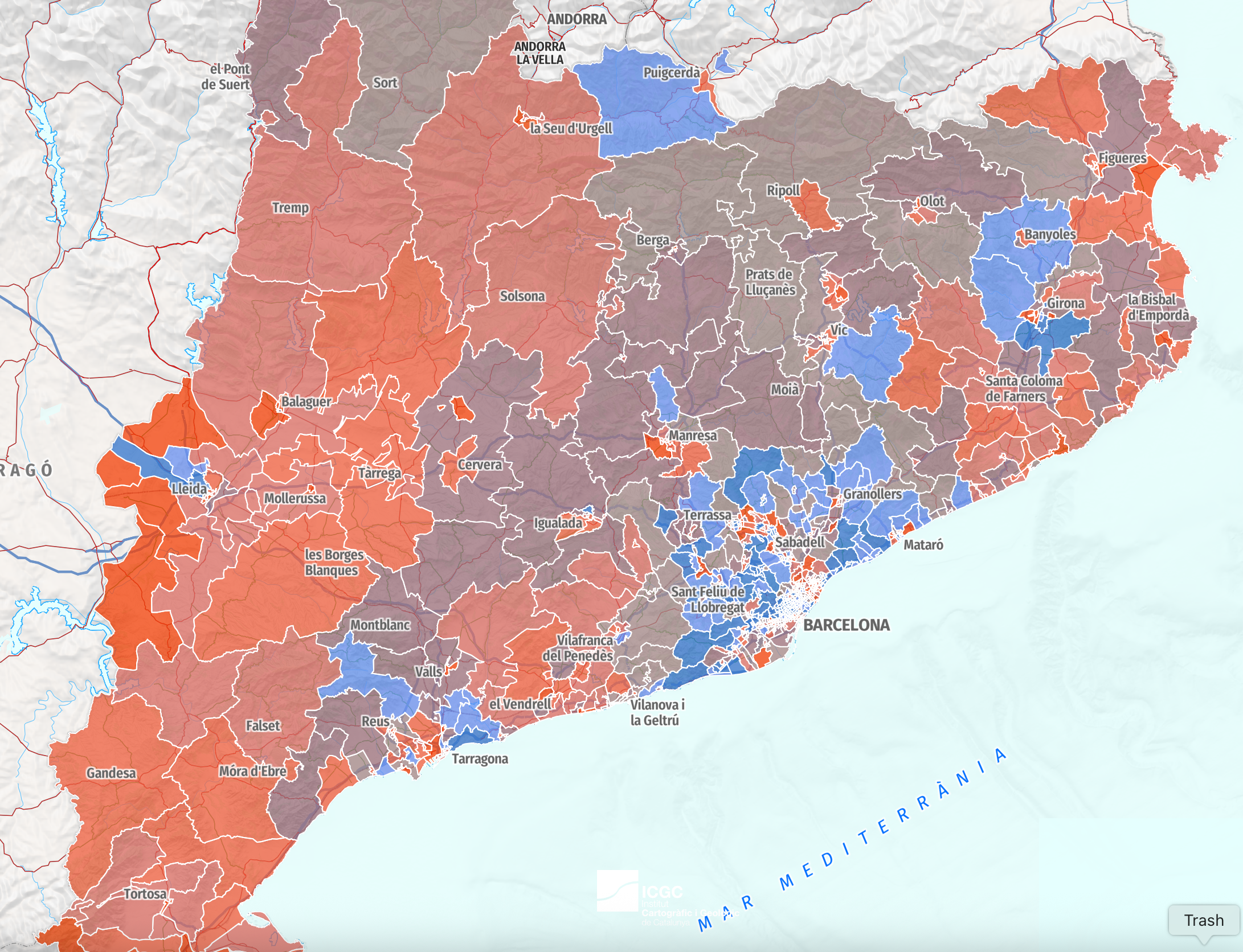 >>1261195 Вот короче карта Каталонии, где синенькое - можно жить, в остальных местах нельзя. Да, там 50 оттенков пиздеца, и в одних местах чуть получше, а в других похуже, но всегда есть какой-то определяющий порог - вот здесь збс, хочется жить даже с компромиссами, а здесь уже никак нет. И конечно в норм местах жилье стоит ебануться как дорого, поэтому вот приходится искать хидден джемы в клоаках.