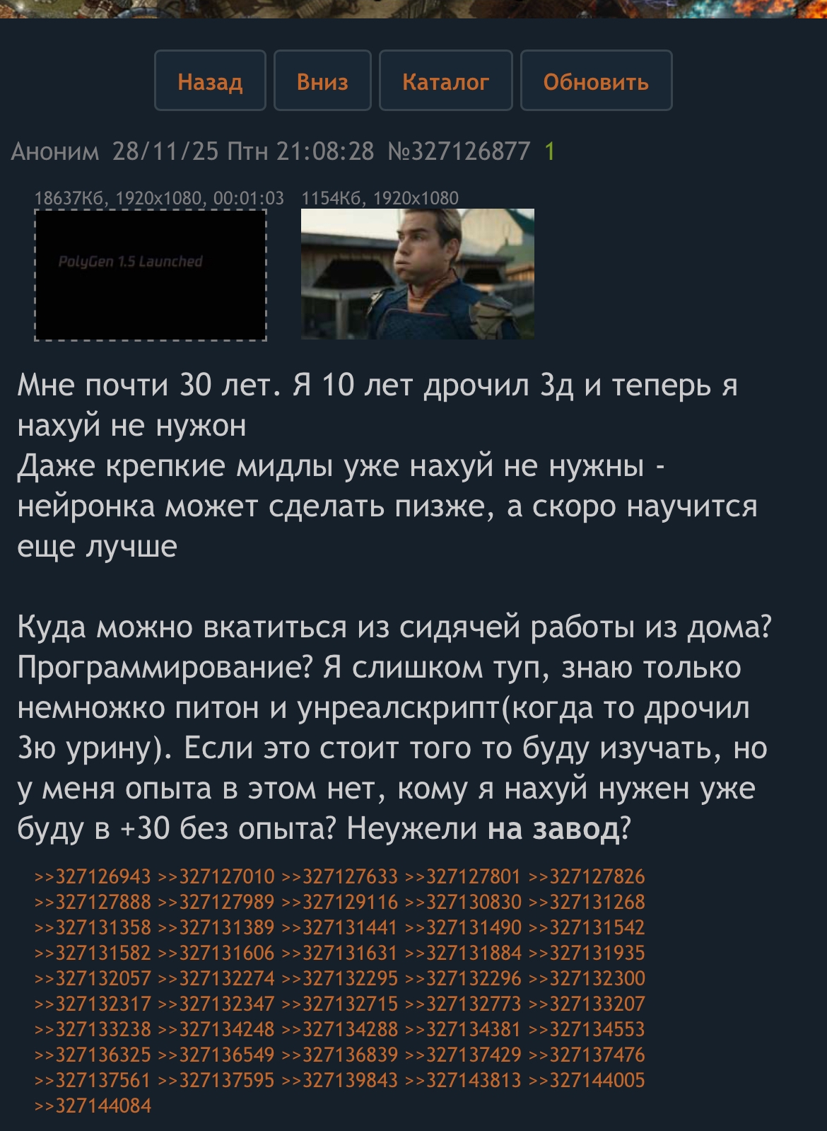 Намыв опять насрал нытьем и негативом из своей обоссаной дофаминовой ямы после трех сисек донасимона, сейчас с утра накурится и будет на подъеме фантазировать как строит виллу из глины на холме под Хихоном.