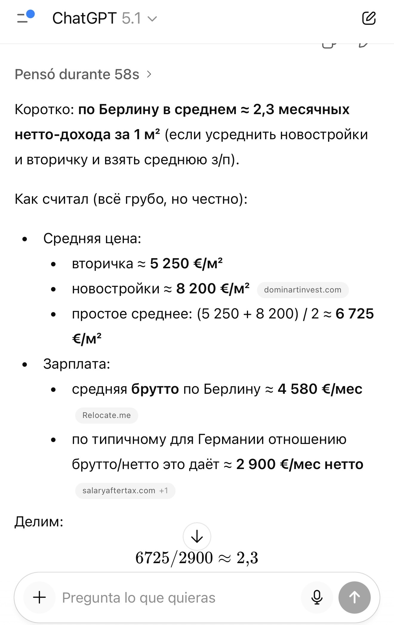 >>1263687 Безотносительно фантазий этих ваших в бизачах, жилье в Испашке вовсе не дорогое пока. Вот умела бы молодежь или мела бы возможность накапливать на первый взнос, то тогда да, выросло бы в цене значительно. Даже в Мадриде 2,5 зряплаты /м2, что немало в целом, но умеренно для европейской столицы.