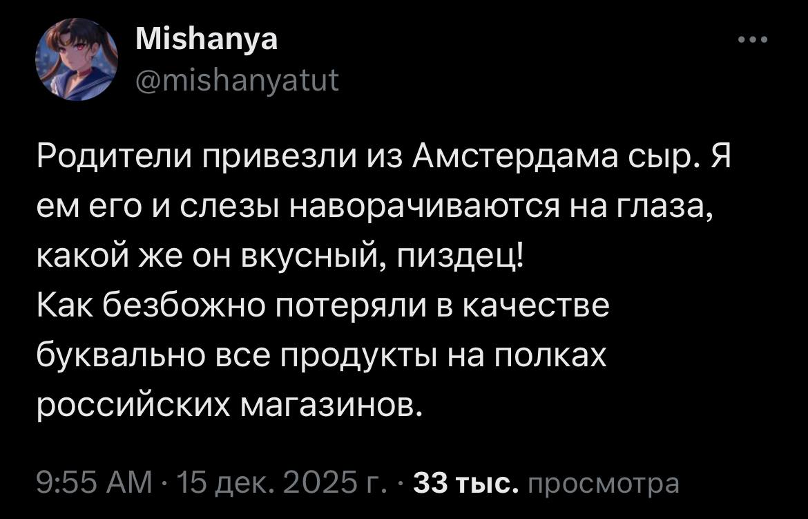 Я в общем-то не жалею, что такую страну проебали, я жалею что я раньше не уехал из рахи. На этом как бы все. Лучше при нашей жизни в рахе уже вероятно никогда не будет. Интернет обратно не включат, гойду не завершат, санкции не снимут. Будет говно еще 10-20 лет минимум. А дальше мы все старые станем и куда-то назад/вперед ехать желания не будет.