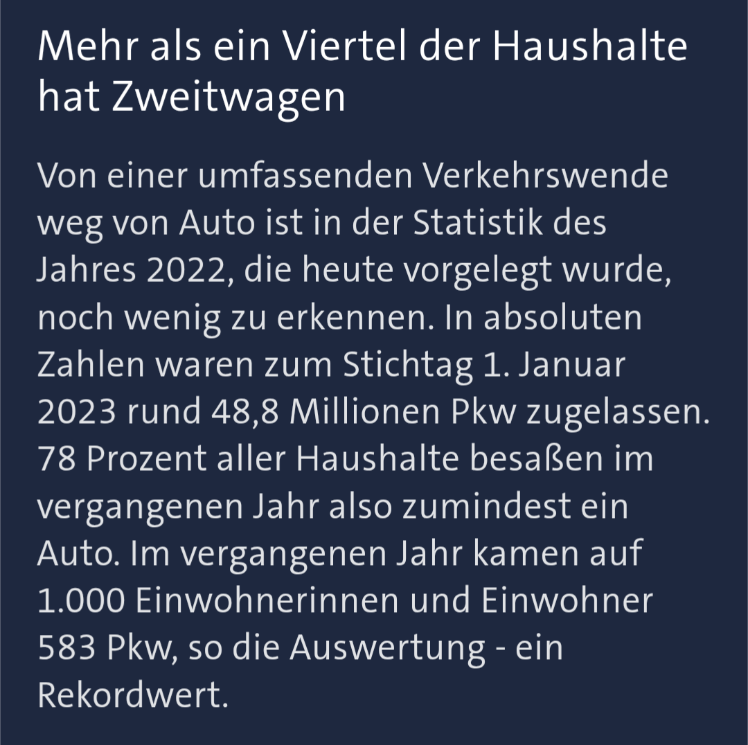 Вы как будто не в Германии живёте. Выезжаешь из скотоблочника в ланд, и сразу видишь как у каждого дома 2+ машины стоит.