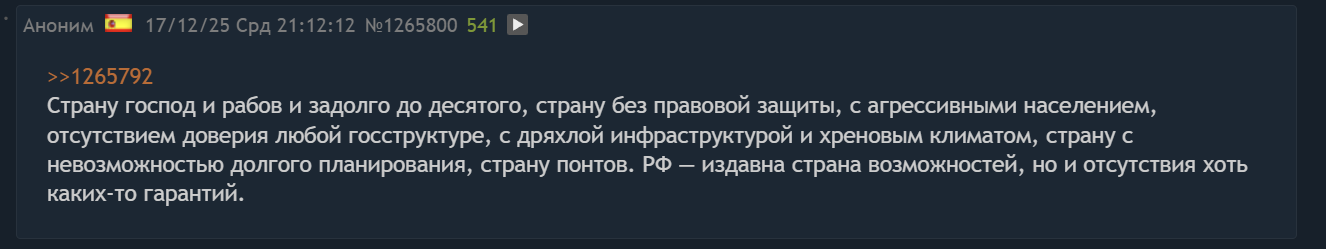 >>1265831 Ну а что не так-то? С работой заморской не коллапс, а там коллапс. С хамоном не коллапс, а там коллапс. И так во всем. Хули ты тут сидишь? Я вот на фонде заработал 30к из ничего и покупаю хату сейчас, а без них бы не хватило. А смог бы я так в РФ? До 2022 может и смог бы, но теперь там не то что на акциях поднять, даже просто работать дороже чем за 3 тыщи баксов не получится. Ну и нахуй там жить? Тут хотя бы это есть.