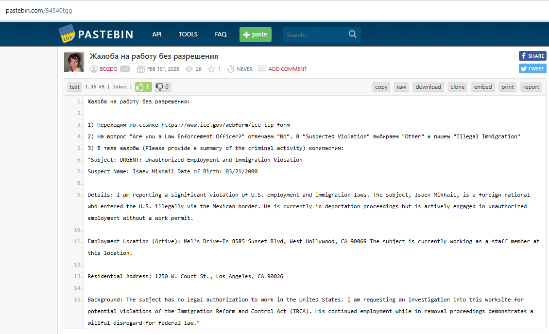 Ситуация с нелегалами в США раздражает со всех сторон. Для начала бесит то, как смешивают иммигрантов и нелегалов. «Ааааа!!! ICE задержали ИММИГРАНТА!!!» «Власти поймали ребёнка ИММИГРАНТА!!!» Серьёзно? Это я — иммигрант! Я подал прошение об убежище и прошёл суд. Иммигранты приезжают по рабочим или гуманитарным визам, выигрывают грин-карту или создают настоящие семьи. Люди же, приехавшие в США без виз и без намерений запрашивать убежище, — это нелегалы. Есть ещё, правда, очень подлая категория — «липовые беженцы», приехавшие вообще без причин для убежища или с надуманными проблемами. Такие люди находятся в легальном статусе, нагружая собой судебную систему, пока та не отфильтрует их от настоящих просителей. Среди «липовых» нельзя не выделить отдельные группы: — Фантазёры: приехали с надуманными причинами. Кто-то считает свою религию на пятьдесят человек гонимой в РФ. Кто-то надеется на защиту по расовым признакам, путая имперский шовинизм большинства россиян с расизмом на государственном уровне. — Псевдопатриоты РФ: мужики, которых до объявления мобилизации ничего не волновало. Жизнь шла своим чередом, они любили власть, ездили в Крым и грозили всему миру кулачком в телевизор. Но мобилизация вдруг открыла в них тягу к свободе! — Невесты: дамочки (мужчины, наверное, тоже встречаются, но счастливых мужей из РФ в свежем браке с американками я не видел, а вот женщин — полно), которые о «каком-то кейсе» узнали только в Мексике! И вот в США они стремительно находят мужа. Если вы встретите таких в метро Нью-Йорка они иногда честно признаются вам в лицо, что муж — для гражданства, а славянский любовник рядом — для души и тела (и тот с удовольствием закивает). При этом все они часто сами признаются, что жили в РФ отлично, да и вернуться для них не беда: у кого квартира, у кого бизнес. Только псевдопатриотов ещё и война РФ против Украины волнует, но совсем не по тем же причинам, по каким она трогает сердца нормальных людей. Но для общественности, новостей и — самое страшное — агентов ICE и иммиграционных судов всё это ИММИГРАНТЫ, включая нелегалов, которых мягко зовут «нелегальные иммигранты». Но и полностью легальные иногда те ещё кадры! Кто-то получил гринку на хайпе. Знакомый псевдопатриот приехал в начале мобилизации и без адвоката выиграл суд, так как суды тогда ещё плохо разбирались в теме (хотя, может, это просто его версия для знакомых, а реальный кейс и правда был столь веским, что власти США дали ему статус беженца). Среди победителей лотереи гринкарт есть такие лицемеры, что зубы сводит. Одна семейка в Нью-Йорке всё прибедняется, что им не хватает средств начать жизнь без помощи города, — а всё потому, что в России они одновременно выплачивают две ипотеки! Порой поражают и родственники тех, кто получил гринкарту с помощью визы талантов или бизнеса. Чаще всего это жёны и подростки, которые упорно не хотят адаптироваться, учить язык и скучают по России (ведь там всё было хорошо). Они и «паровозу» своему жизнь травят, и создают общий образ иммигранта как человека тупого и неадаптируемого. Когда слышу, как они хотят обратно, жалею, что нет механизма отдать их грин-карту тому, кто о ней мечтает и хочет просто жить на правах обычного гражданина. Меня часто упрекают, что я защищаю ICE. Но почему я должен относиться к ним однозначно негативно? Да, из-за того, 