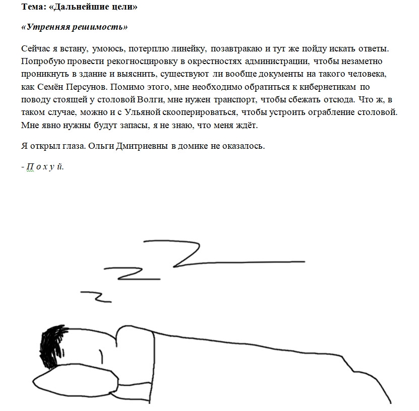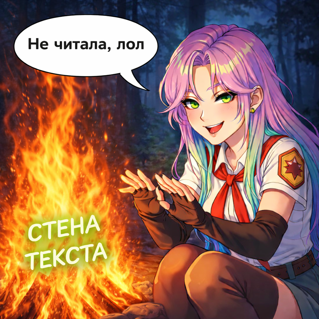 Сходим с ума в бесконечных витках, бугуртим на Юлю, не отвечающую на вопросы, ловим дежавю от Слави в воротах, перестаём искать ответы из-за переодевающейся вожатой, а затем всё заново. Присаживайся к костру, анон, открывай Буратину или водку