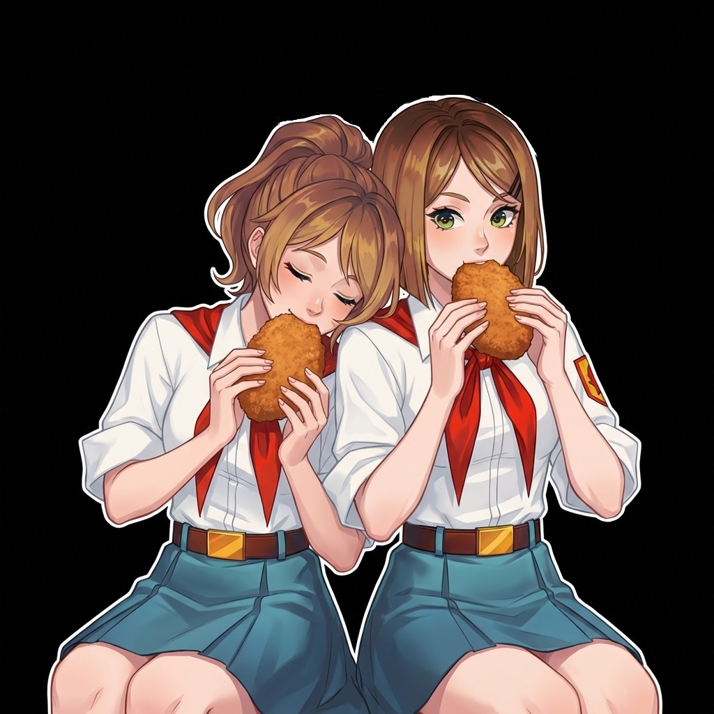 Это Соня и Настя, самые оригинальные пионерки Бесконечного Лета 2. Почему? Да потому что, на самом деле, это одна пионерка, которая при попадании в лагерь разделилась на две личности. (ну или еще есть версия, что это одна личность из двух параллельных вселенных, не суть).