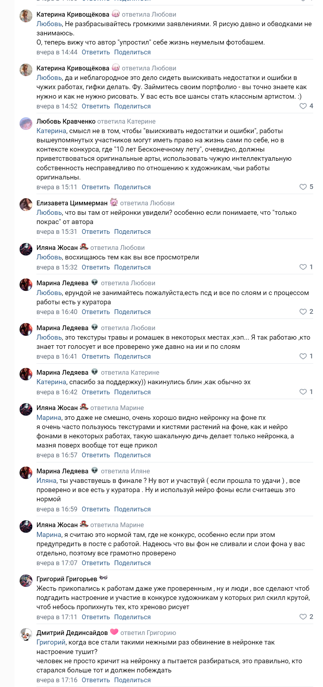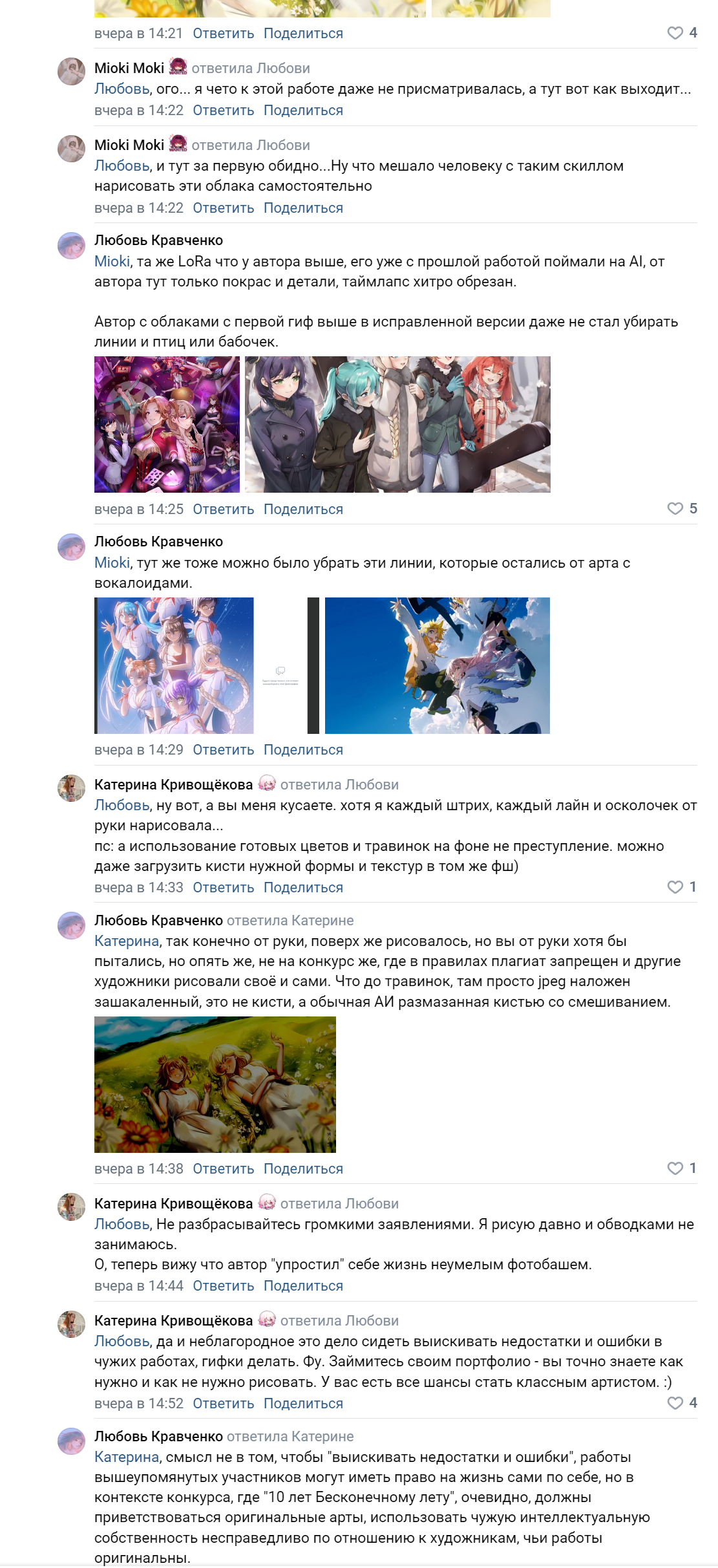 предыстория: кринжоконкурс с ахуенным бюджетом в 50к на юбилей клуба пивонеров, в котором Микуликий и КО из ПАЗа и прочих пивабликов попросили художников нарисовать арты строго без ИИ, плагиатов, нельзя накручивать голоса хуяса, в итоге их запалили на адовом похуизме по отгошению к участникам конкурса: 1) часть работ тут же спалили на использовании ИИ и плагиате, админы пивабликов и орги устроили дополнительное голосование попросили добавить работы в общее голосование, что вообще запрещено правилами, но всем похуй как бы. уже нарисовались работы, которые потенциально должны были победить и их проталкивали админы + там как говорил простой люд в ПАЗе и уже эти комменты потер их админ, что места как и в прошлый раз куплены, там вроде как работа с цирком, что иронично, у пионерки которая является подругой админа ПАЗа. пионерка кстати красивая, эмочка 2) админы естественно протолкнули в жопу голосование работы с ии за которые топили, та похуй что люди пишут и что видео как она рисует обрезаны к хуям, админ зачем-то написал под ее работой что все проверено, идите нахуй, она не ИИ, затем пионерка с цирком скрыла страницу 3) одного чела с норм пикчей вообще нахуй выкинули из голосования ахаха блядь хотя у него голосов было больше по таблице и это заметил лишь рандомыч в комментах и пара фагов 4) всё еще идет финал голосования, прошлое было хитровыебанно накрученное 50к на 5 человек, пиздец Риточка, кринжа навалил гифы из комментов: https://ibb.co/XSqg75T https://ibb.co/x7F58JV