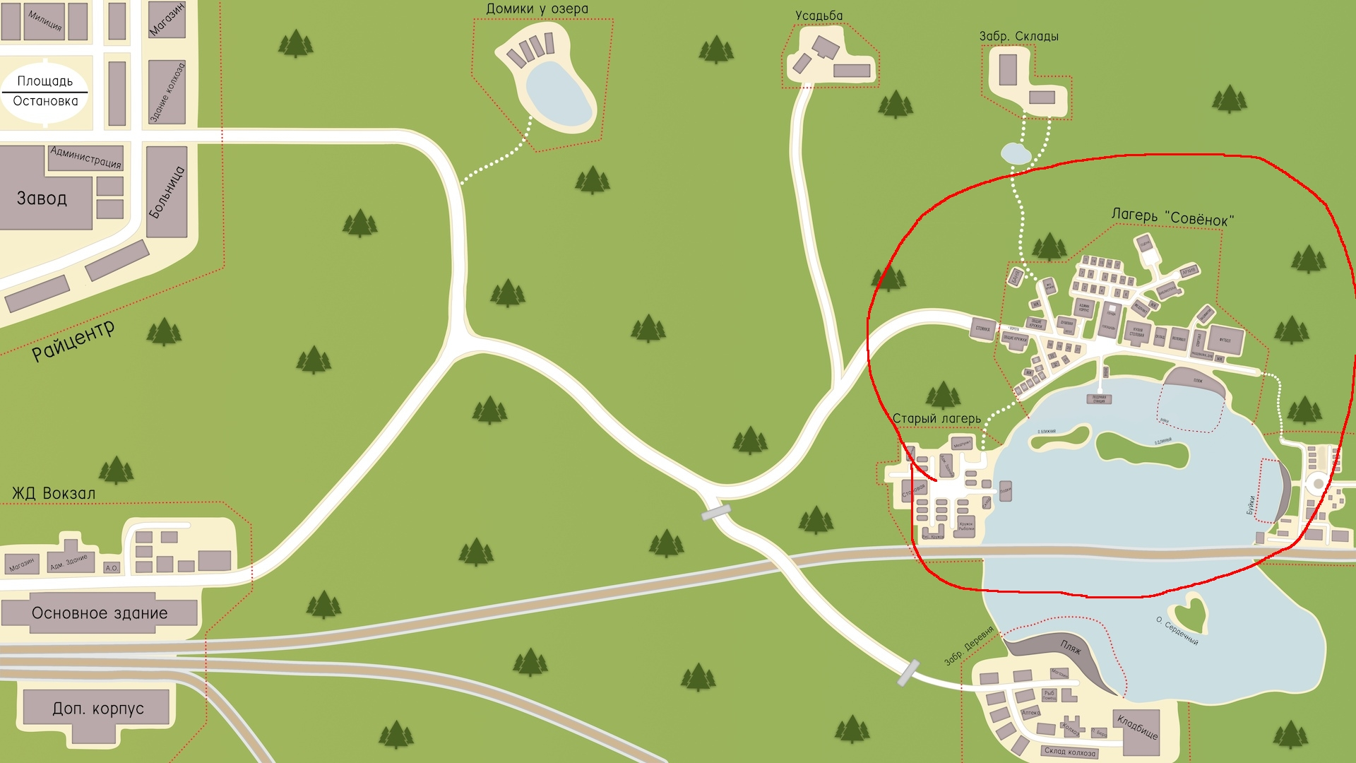 В конце дня идет общелагерное/отрядное мероприятие. Обычно это что-то вроде концерта, форума, выступления, соревнований и т.д. Концерт уже много раз был, заезжено. Для соревнований понадобится вводить персонажей из других отрядов или хотя бы их описывать. Да и неинтересно слушать про спорт. Форум, скорее всего, был бы в реальности. В Артеке вечерние отрядные мероприятия это обычно что-то вроде игры с социально-культурным подтекстом. Обсуждение экологических проблем, например. В советском лагере обсуждали бы основы идеологии, важность построения гражданского общества, общечеловеческие ценности или что-то историческое. Опять же, читать особо не интересно. Хотя...