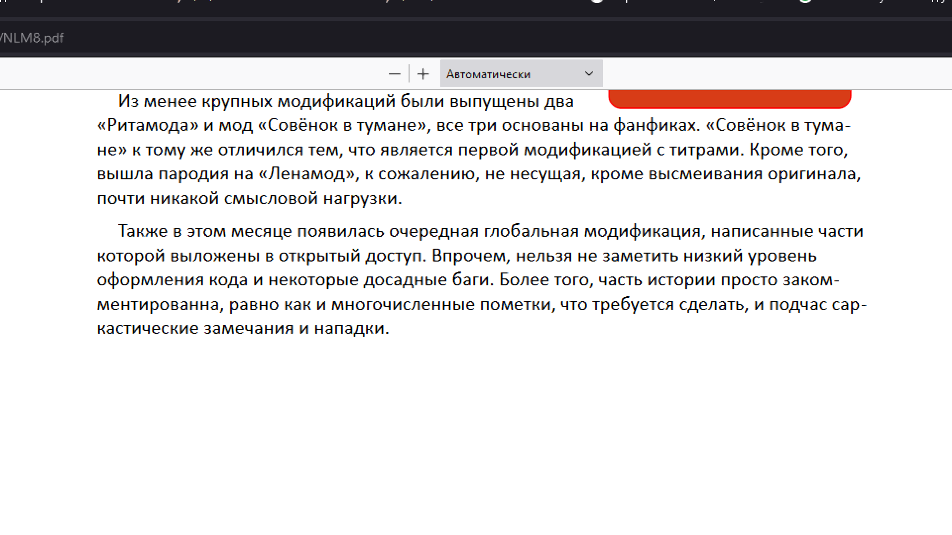 >>1100236 Спасибо! На самом деле довольно коряво вышло, как например я забыл кое-что поменять перед тем как выложить и по тексту выходит что при общении в Ульяной в начале Алиса сперва в футболке, а потом внезапно в рубашке. Сейчас вот в доке исправил. Надо бы ещё стрёмные места поисправлять как и общую корявость текста. > А также вбоквел. Ахах, да точно! Вбоквел, так и назовём.