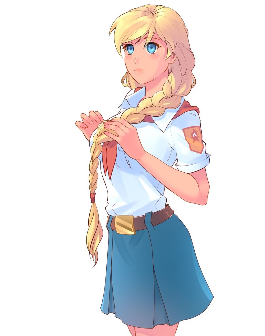 >>1141446 С одной стороны да, такая внешность работает на архетип, с другой стороны - слегка >кукла барби, стереотипная блондинка-бимбо с простыми отзывчивым характером, трудолюбивая и благоразумная - это более сложный образ, более интересный. Впрочем, в итоге на спрайтах все получились анимешно сладкими, поэтому контраст не работает. У Смолева на ЦГшках ещё были интересные моменты, когда Славя задумывалась и смотрела куда-то за горизонт с отрешённой улыбкой, но это ни к чему не стали вести. А жаль.