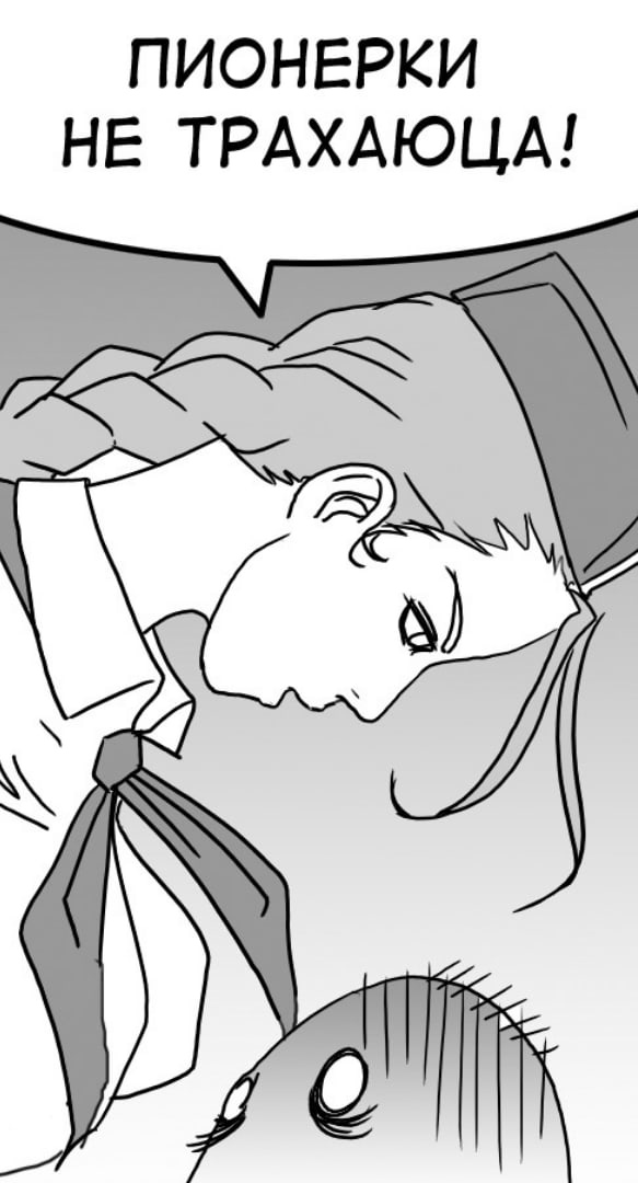 Славя - сексуальная маньячка. Она приехала в Совёнок за неделю до приезда Семёна (смена длится 2 недели, как я помню). И она ещё и лесбиянка. Её цель - сексуально поработить всех девочек отряда, причём сделать это нежно, так, чтобы они сами в неё влюбились и сосали её пизду просто взахлёб. А хлебать есть что, ведь у Слави есть патология психосексуального развития - повышенное либидо вкупе с непрекращающейся течкой (именно поэтому ей нужны прокладки, трусы промокают за час) Первым делом Славя порабощает свою соседку, Женю. Однажды Женя простужается на пляже, и ночью жалуется на озноб. Славя, как настоящая пионерка, приходит ей на помощь. Она ложится в кровать к Жене и обнимает её. Но Жене всё равно холодно. Тогла Славя задирает ночнушку, прижимает её голову под сиськи и сверху натягивает ночнушку. Стоит ли говорить, что после того, как Женя ощутила запах славиного тела и живое тепло её грудей, её судьба предрешена. Наутро Женя уже помогает Славе с отсосом вагинальных выделений, ведь прокладки в медпункт так и не завезли...