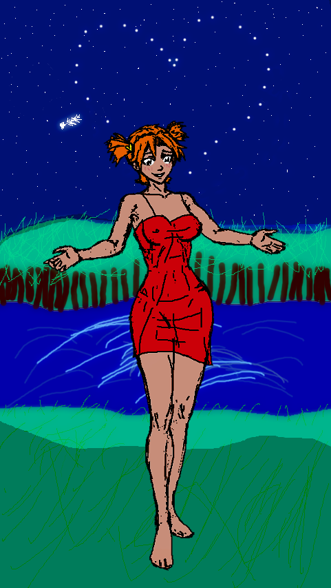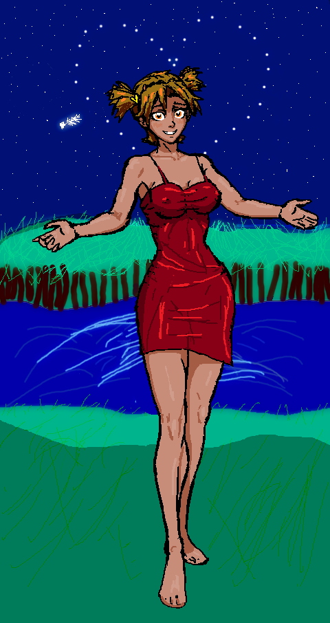 >>1103674 Если что смотри. Смысл такой. Алиска стоит и смотрит на нас типа в кроне деревьев. Ну то есть под деревьями, мол мы подходим к воде. Соответственно Луна светит сзади нас, как смотрящих на нее, что я и попытался изобразить просвечиванием воды и леса на заднем плане