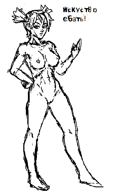 >>1123888 >>1123885 Действительно здорово, вот тебе небольшая допомога. Сиськи задрал высоко слишком, если опустить их на место, то заметно что плечи через чур широкие для бабы. Важны пропорции. Руки длиннее, от пупка до лобка или до места смыкания рёбер или от места смыкания рёбер до ключиц равные расстояния - одно лицо(от подбородка до линии роста волос). Так же не хватает симметрии лицу, ну эт по мелочам.