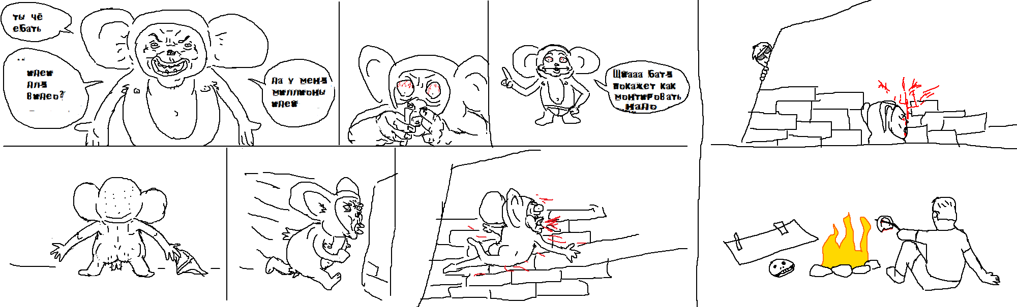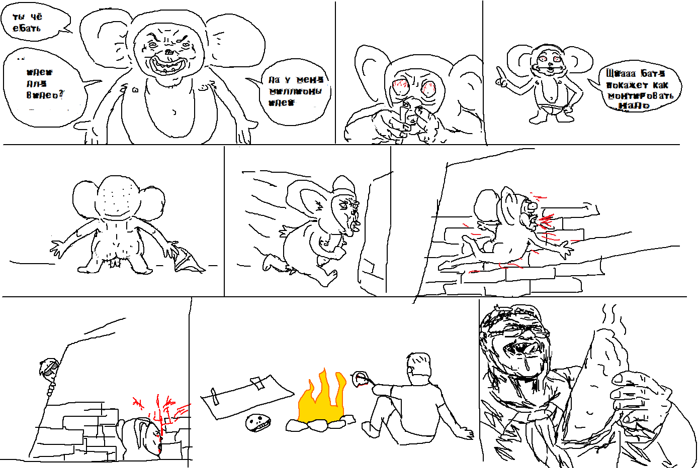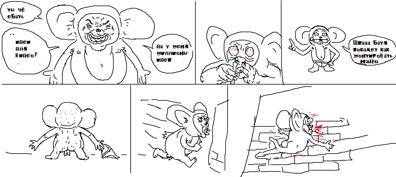 аноны, кто хочет заняться творчеством? есть актуалочка: можно сделать видик где шурик(или семён) танцует в бомбоубежище, а рядом на кровати сидит пионерка. короче, как в шебемке. фон у нас уже есть, видео я смонтирую, но блять, я ебал без навыков перерисовывать спрайт в фотошопе 3 дня и 3 ночи.