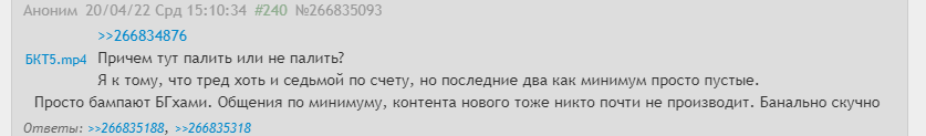 >>1122877 Ага, интересно. Теперь ты говоришь что какие-то видео таки были. НО теперь тебя не устраивает то что они не конкретно с жпбл. А что плохого в том, что видео было создано не в пределах треда? Такой же новый контент, которые видели единицы, которые сидят в этом рисоваче. Больше я свои видео никуда не кидаю. Жаль что вот обитатели жпбл не оценили почти, это как минимум обидно было. Я делаю видео очень редко, если вдохновлюсь и мне будет не лень. И на удивление жпбл оказался вдохновителем, ведь я вспомнил Бесконечного карантина треды, где в принципе и начал делать видео по БЛ (видеорелейтед). Однако видео (даже два, т.к первое я допиливал) на которое ушло два вечера, было практически пропущено меж пальцев. Но ОП 10 жпбл вставил то видео в шапку, стало немного приятно даже. И столько вони по поводу того, что именно твой (или не твой) видос не попал в шапку. Чиби получились не идеальными, но и не таким лютейшим шином. >>1122879 Та же самая Ульяна была встрата (а я Ульянофаг, меж прочим), и я так же делал замечание за волосы, которое было проигнорировано, ведь никто не заметил, да? Суть то в чём. Чем мои видео хуже твоего? При создании треда есть лимит по весу, и твоё видео просто в него не вписалось.