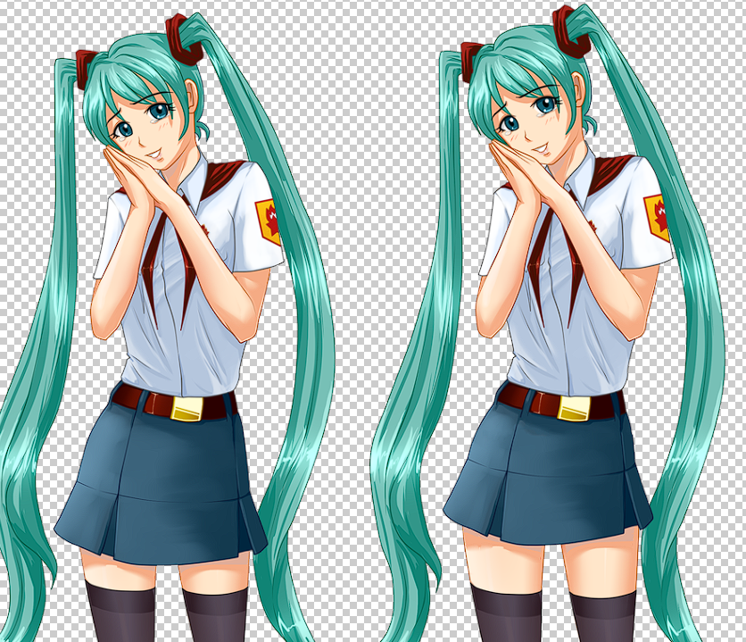 Есть умельцы, способные на спрайтах ловко подрезать Мику юбку, чтобы не сразу было понятно, что она обрезана? До такой длины, но чтобы спереди панцу не было заметно.