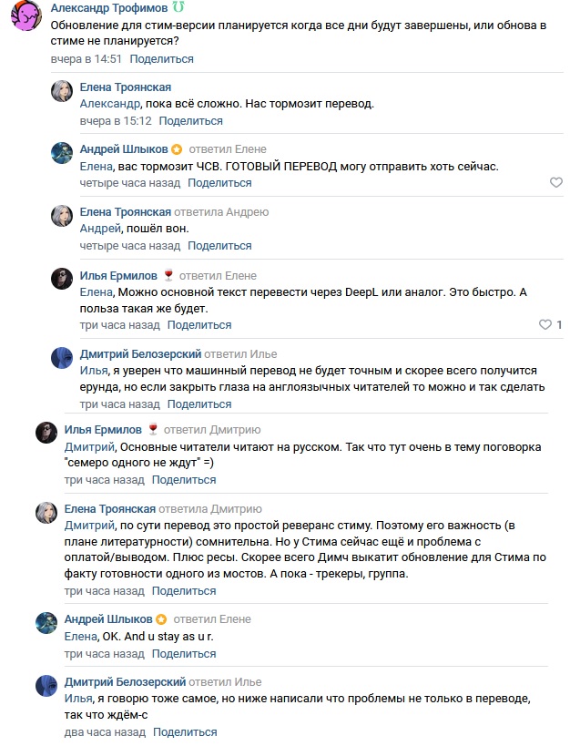 >>1125005 (OP) За пару недель чекнул концовки Лены и Слави. Первая лично у меня вызвала нейтральные эмоции. Ожидал что будет бесить а в целом даже лампово по своему получилось. Хотя темпы развития отношений уж слишком быстрые, я ещё помню как в моде "Моё рыжее счастье" проигрывал с того как всё быстро у Алисы с Семёном сложилось, а тут примерно такое же дерьмо, лол. Со сцены с передозом прям охуенно получилось, напряжённо так. Только я так и не понял момент с передозом был очередным сном собаки? Со Славей ситуация немного обратная вышла. По большей части Рут понравился. В начале немного напрягали местные черепашьи темпы отношений, но в целом потом всё это окупилось крайне ламповыми 5 и 6 днём. У меня получилось выйти на сцену с простудой, на моменте когда Семён прям сходу хватает и обнимает Славю я аж пискнул, настолько хорошим мне показался этот момент. Плюс ещё музыка хорошо подобрана, я кайфанул. Но вот с концовкой лажа, потому что у меня не хватило кармы взять телефон из-за этого не вышло хорошей концовки Герка. Вместо этого получил очередную порцию грустного дерьма про Семена с деменцией. Кстати, а момент со свечкой это тоже сон собаки или какая то анал-аномалия? З.Ы. концовка Слави Классик мне понравилась больше