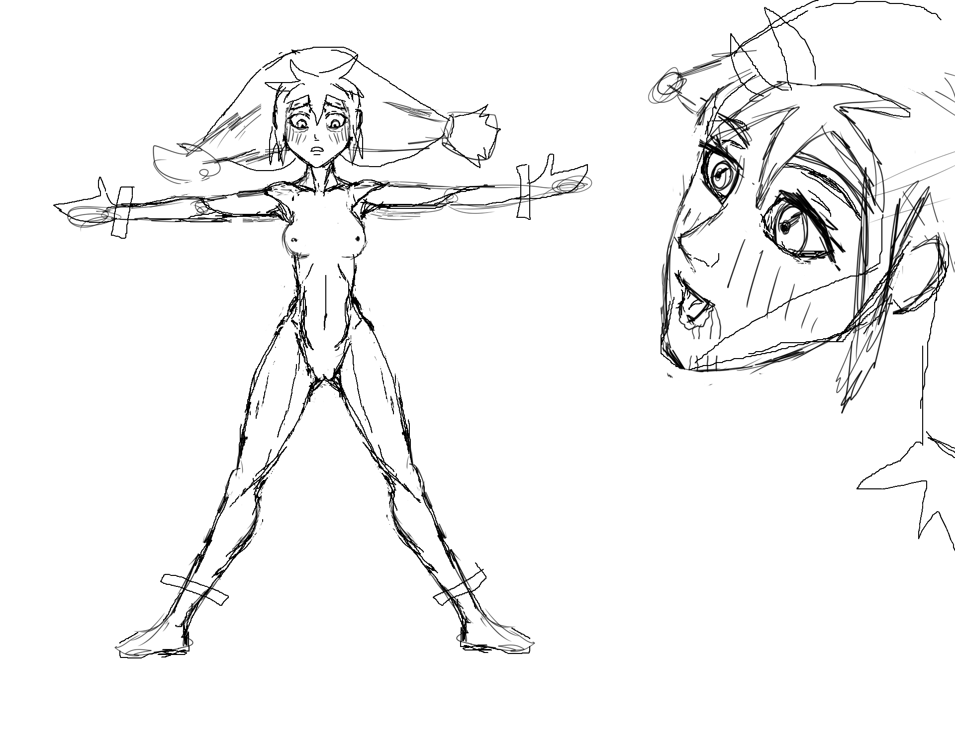 >>1132652 Чёт спать пора, поэтому побыренькому накидал, у тебя хорошо вызходит, надо бы хоботить пропорции и соотношение длины, конечностей туловища и всего такого