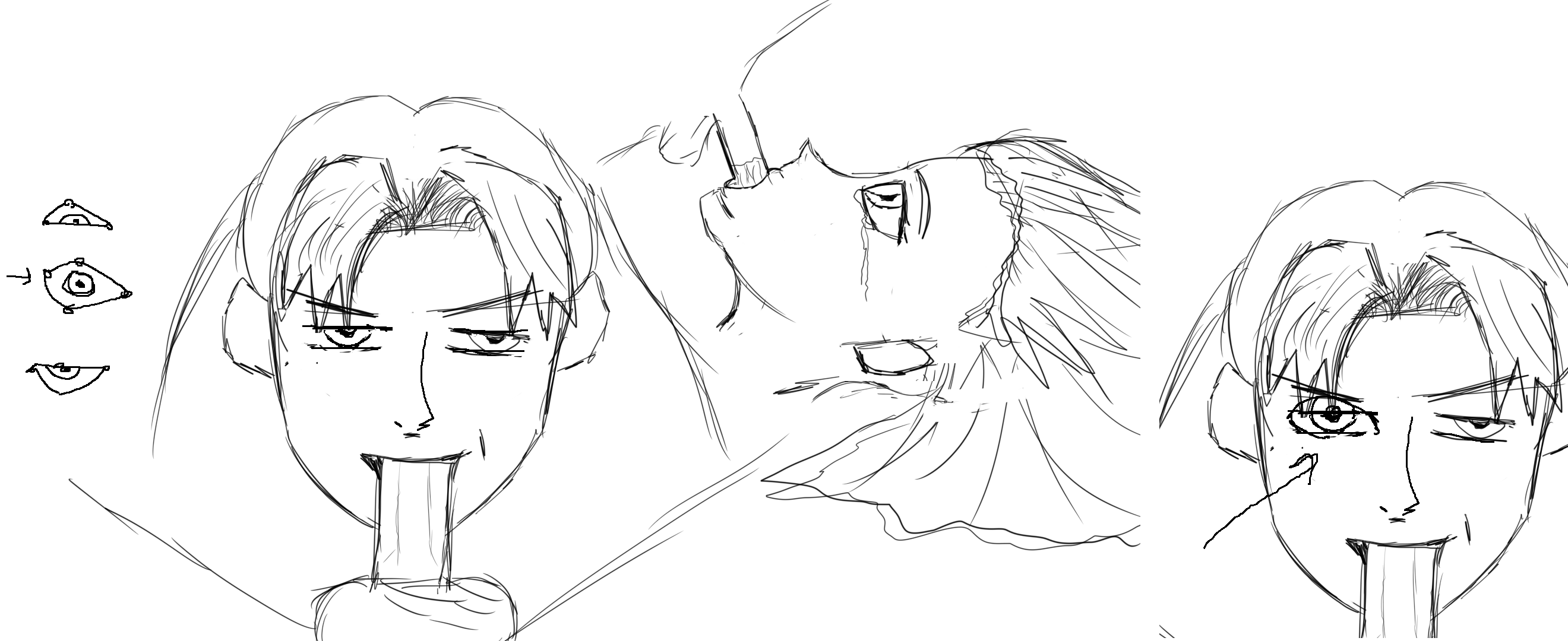 >>1126733 У век глаза есть 4 точки, на которые веки стягиваются ибо там крепление мышц. У тебя глаз потянуло куда-то не туда. Вот я для наглядности накидал полностью открытый глаз. Сбоку очень даже нихуёва, но ухо чуть не там. Хотя я тут сам не селён, надо бы хоботить опыт. Сейчас думаю всерьёз заняться анатомией боковой и прямой стороны лица чтобы норм понять как крутить башку.