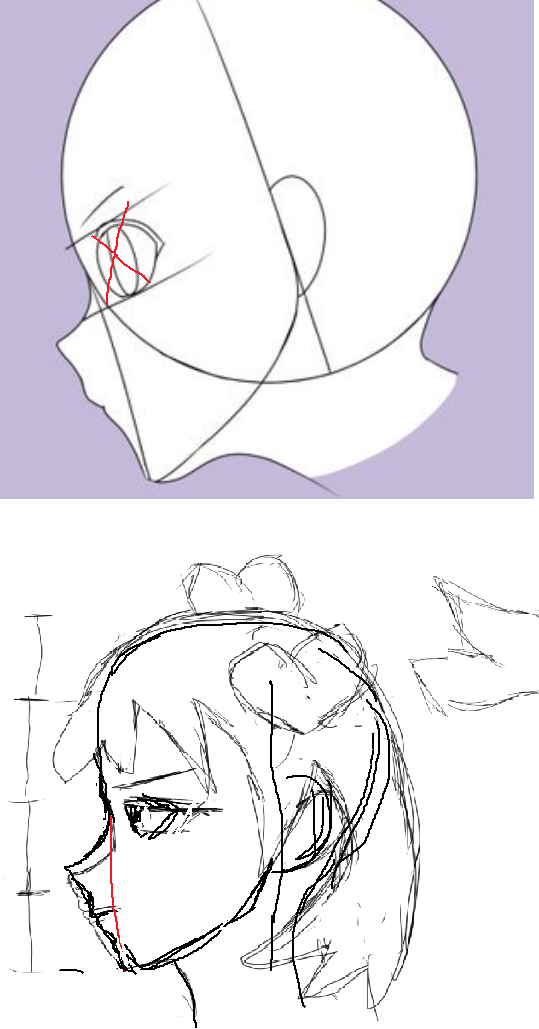 >>1132710 Да не загоняйся, братан. Просто ты пытаешься с ходу заделать неподъёмные задачи. По началу надо как можно более простые позы рисовать чисто упор на запоминание пропорций делать, только когда знаешь пропорции есть смысол их пытаться хитровыебанно искажать в пространстве. >>1132708 Тут не совсем человеческая анатомия и да, глаз сбоку там совсем неправильный. НО очень верно отпускать от круга линию вниз ведь она точно упадёт в основание подбородка. Это будет ориентиром. Женские надбровные дуги почти не заметны, можно их почти не рисовать.