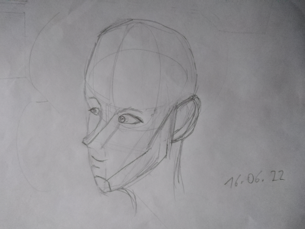 Толи голову в виде куба рисовать, то ли в виде шара с элипсами. Всё равно получается что то среднее и всё равно конструкция летит в пизду. Но в академ рисунок ни ногой, туда лучше вообще не лезть.