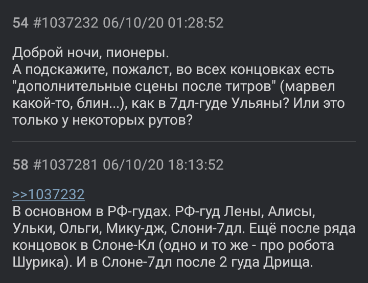 Амбалы, немножко по логике ветвлений. В истинной-транзит концовке Леночки часто упоминается Лена Локи/Дрища из РФ и её надгробие, это всё играет там важную роль. Но и Герк может выйти на эту концовку. Может стоит Герку заблочить выход на ленотранзит с сыча?