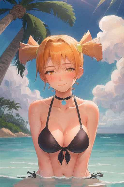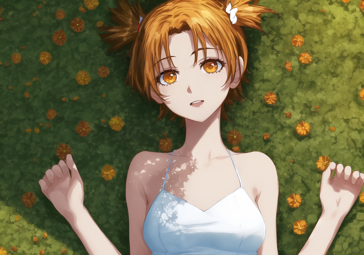 Если прописать в промте только orange hair, orange twintails, настройки как на 2 пике - получится минимум похожеб но не то