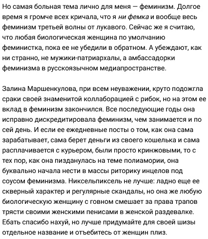 С добрым утром пивожоры, оказывается, что писательница пива - радфем-трансфобка. Как вам такое открытие? Теперь ясно откуда в амбалопивасе лесбоконцовки и такая неохота притрагиваться к теме секса? P.S. Кате желаю найти себе няшную траподевочку и поняшиться с ней и переставать выдавать такой уровень кринжа в 2022 году.