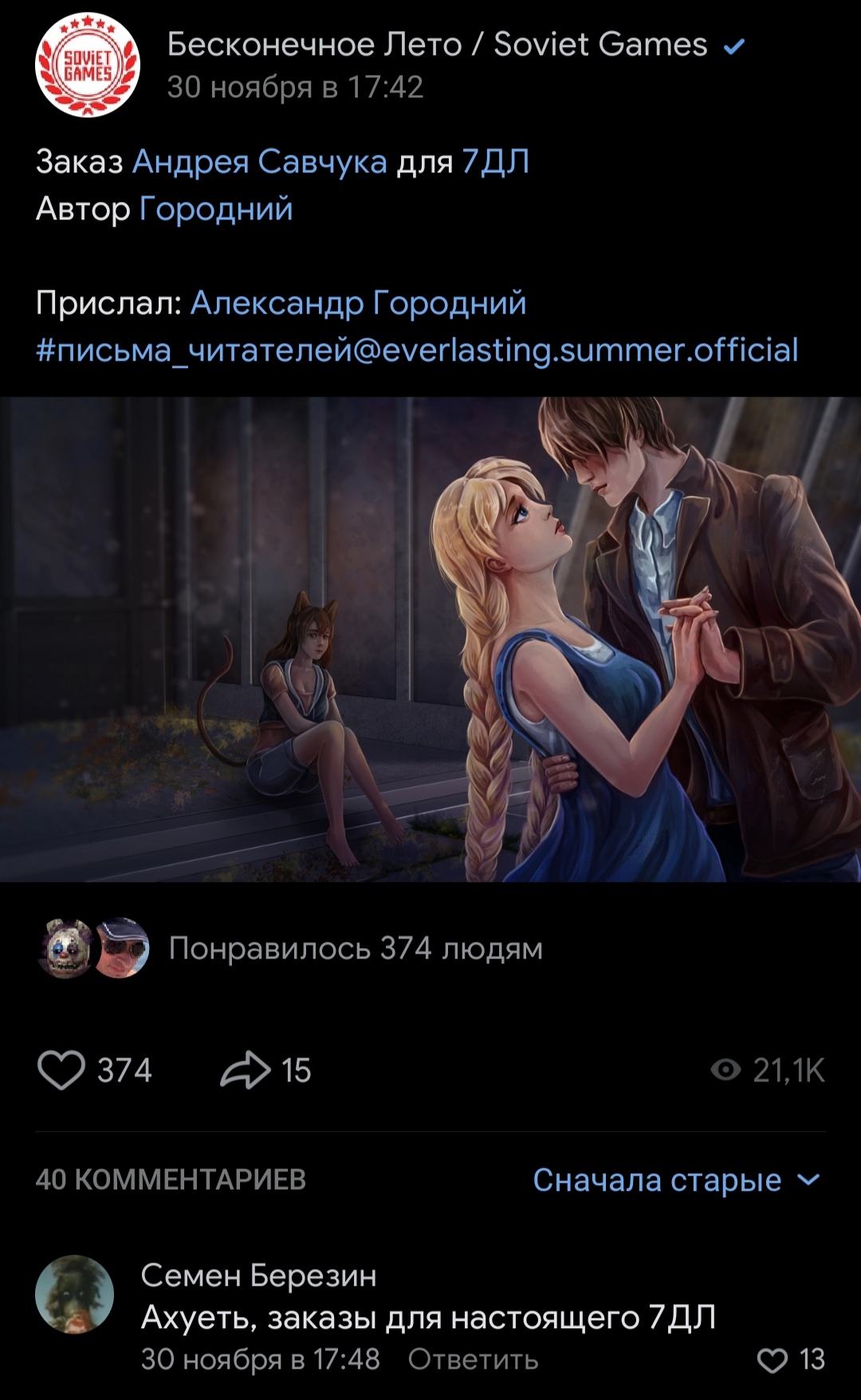 Вчера, в ходе беседы в дискорд-канале, выяснилось, что группа из двух энтузиастов решили перевести 7дл на ангельский. С их слов: мы два рандомных алкаша, которые начали читать 7дл месяц назад и настолько охуели с рута Лены-ФЗ, что решили перевести весь мод. Перевод машинный, но доведённый до ума ручками. Например, англоязычные положительно отозвались о руте Ольги.