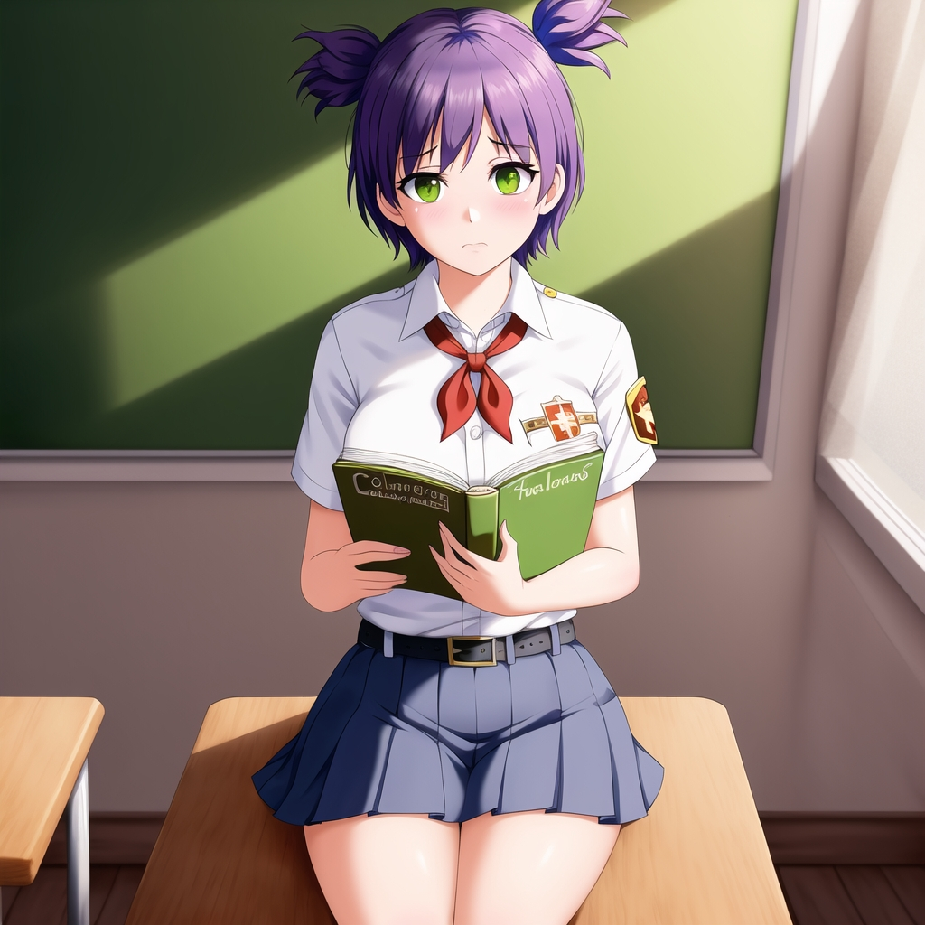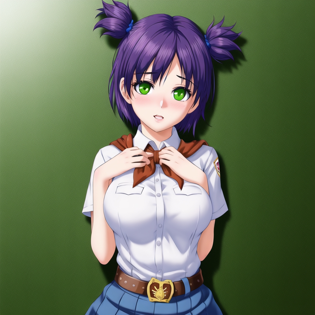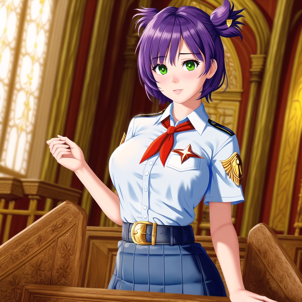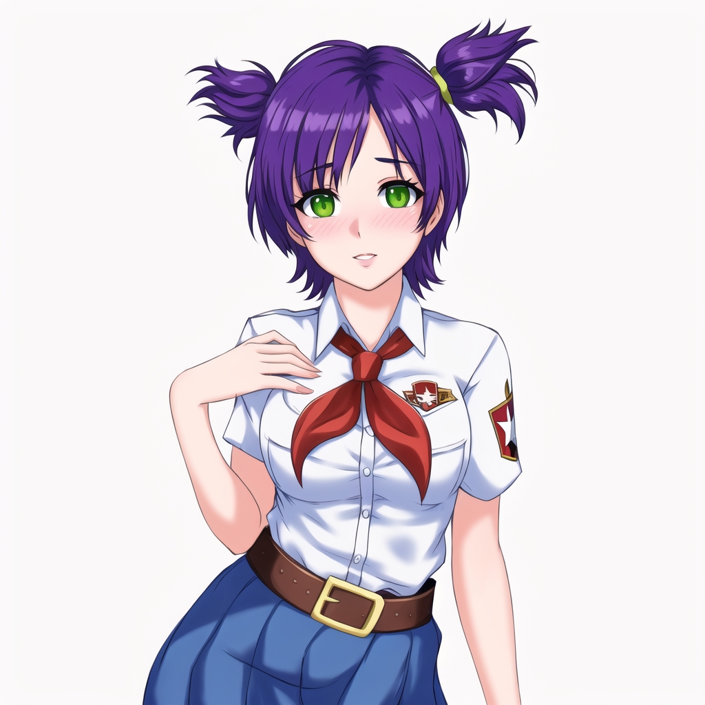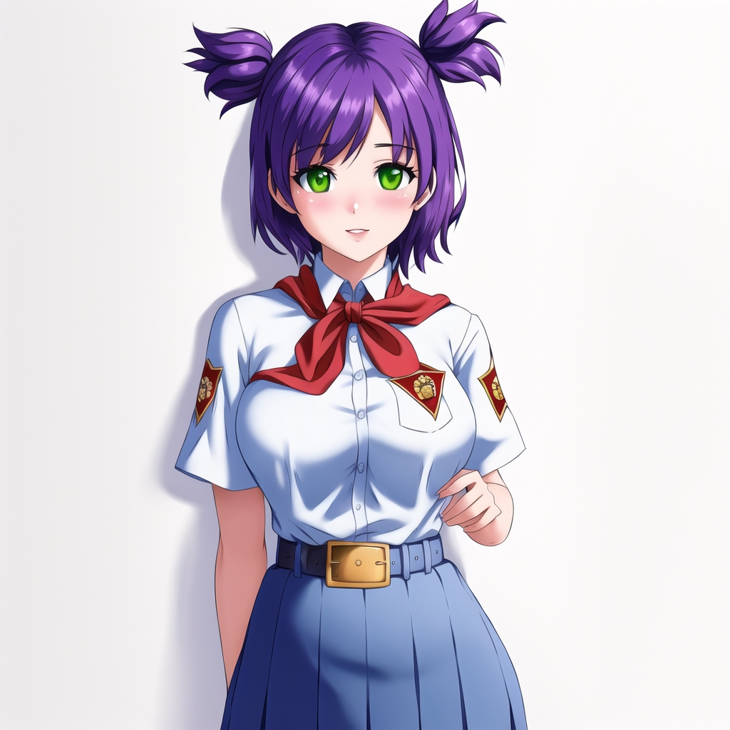Нейронка при обучении решила что Леночка из мусарни и теперь то погоны ей пририсует, то кобуру. И это я еще правлю цвета рубашки и юбки, рубашку он пытается рисовать в мусорском голубом, а юбку в зеленом.