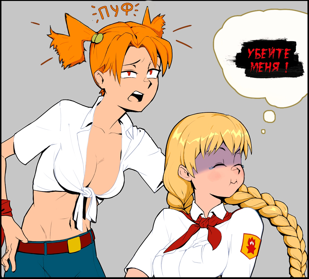 >>1160843 Во, чётка. Только нафиг сиги. Только сиськи рядом с недорисованной рукой чутка побольше сделать, а то сплюснутая сильно. >Тогда у неё либо ножки-спички торчат, либо она выглядит как перекачанная бой-баба Мы за спорт! >Короче этот образ плохо вяжется с пионерской юбкой и носочками Когда не знаешь какую одежду нарисовать, значит одежду рисовать не надо