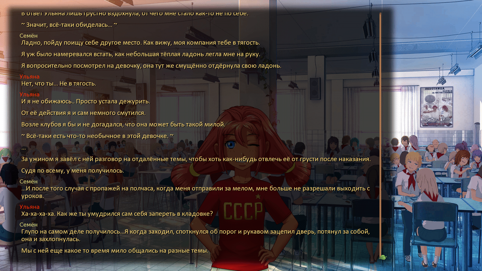 >>1222662 > Картинка с текстом при запуске говорит что всем 18 лет. Ульяна это карлик, живи с этим. Допустим им всем по 18, но тогда возникает справедливый вопрос, какого хуя эти переростки делают в детском пионерском лагере, учитывая, что они не вожатки, а простые пионэры.
