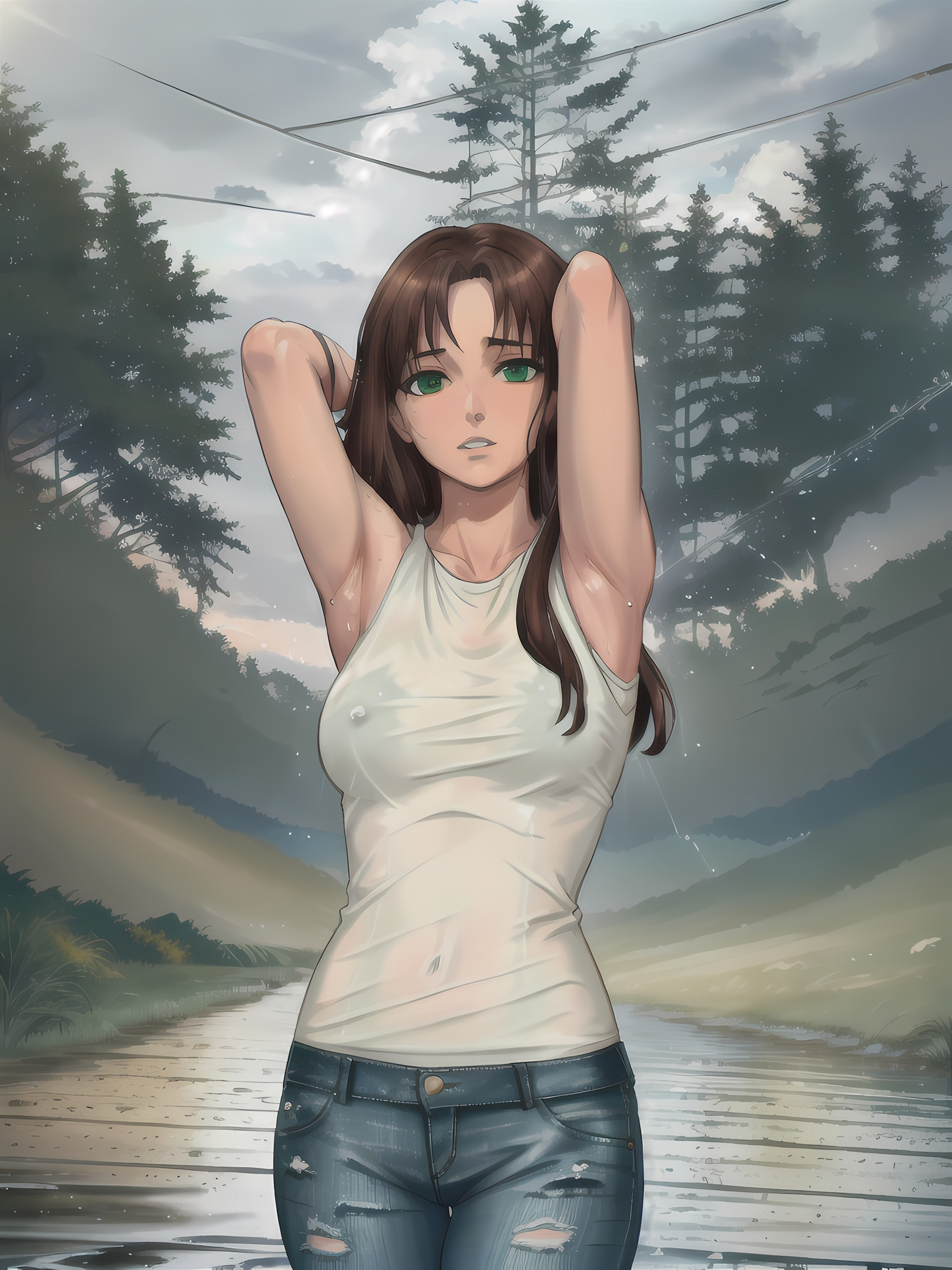 Тоже самое с глазами. И да, у тебя Алиса перекачена, как культуристка, а ручонки словно у Ульяны позаимствовала. Если уж позиционируешь её такой из себя спортсменкой, то подкачай руки.