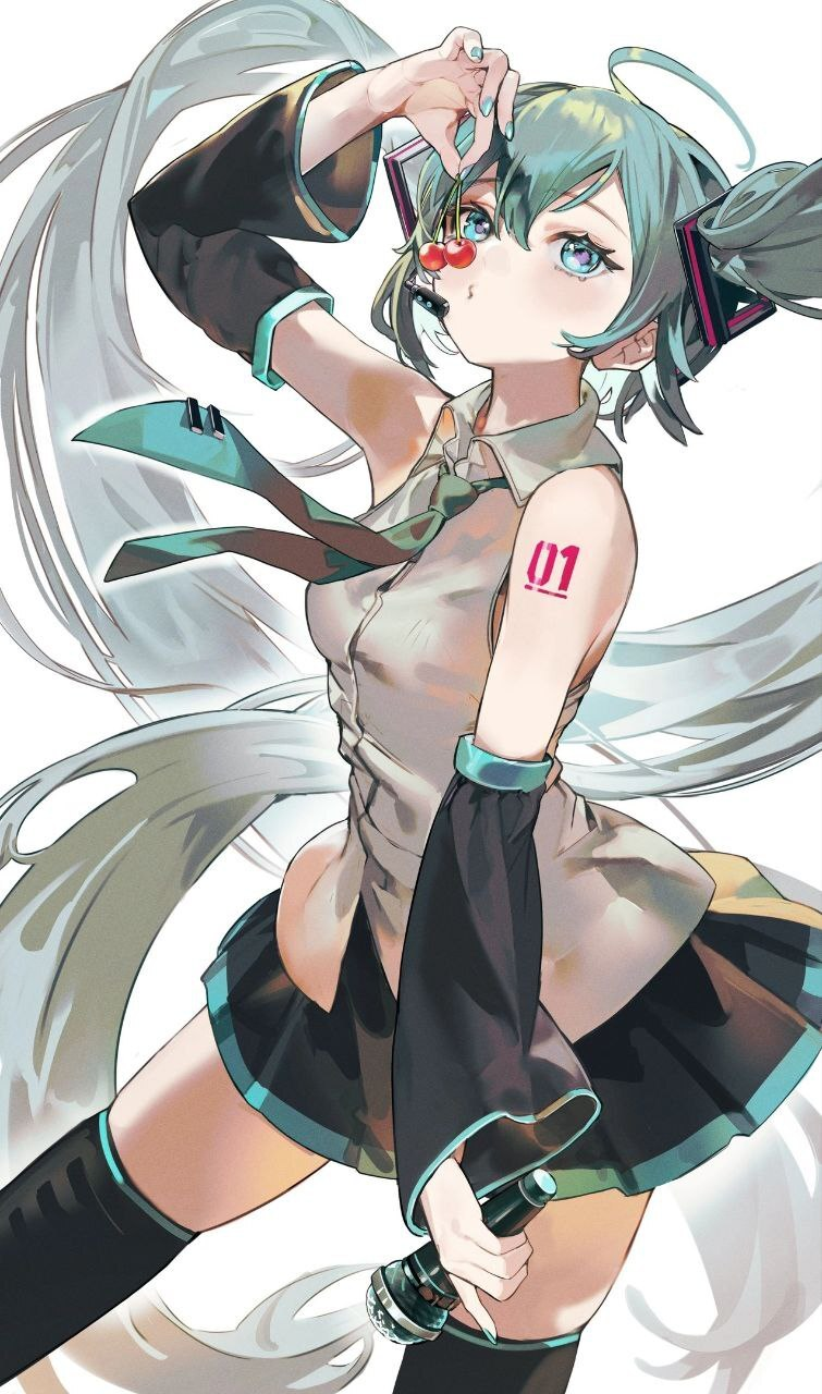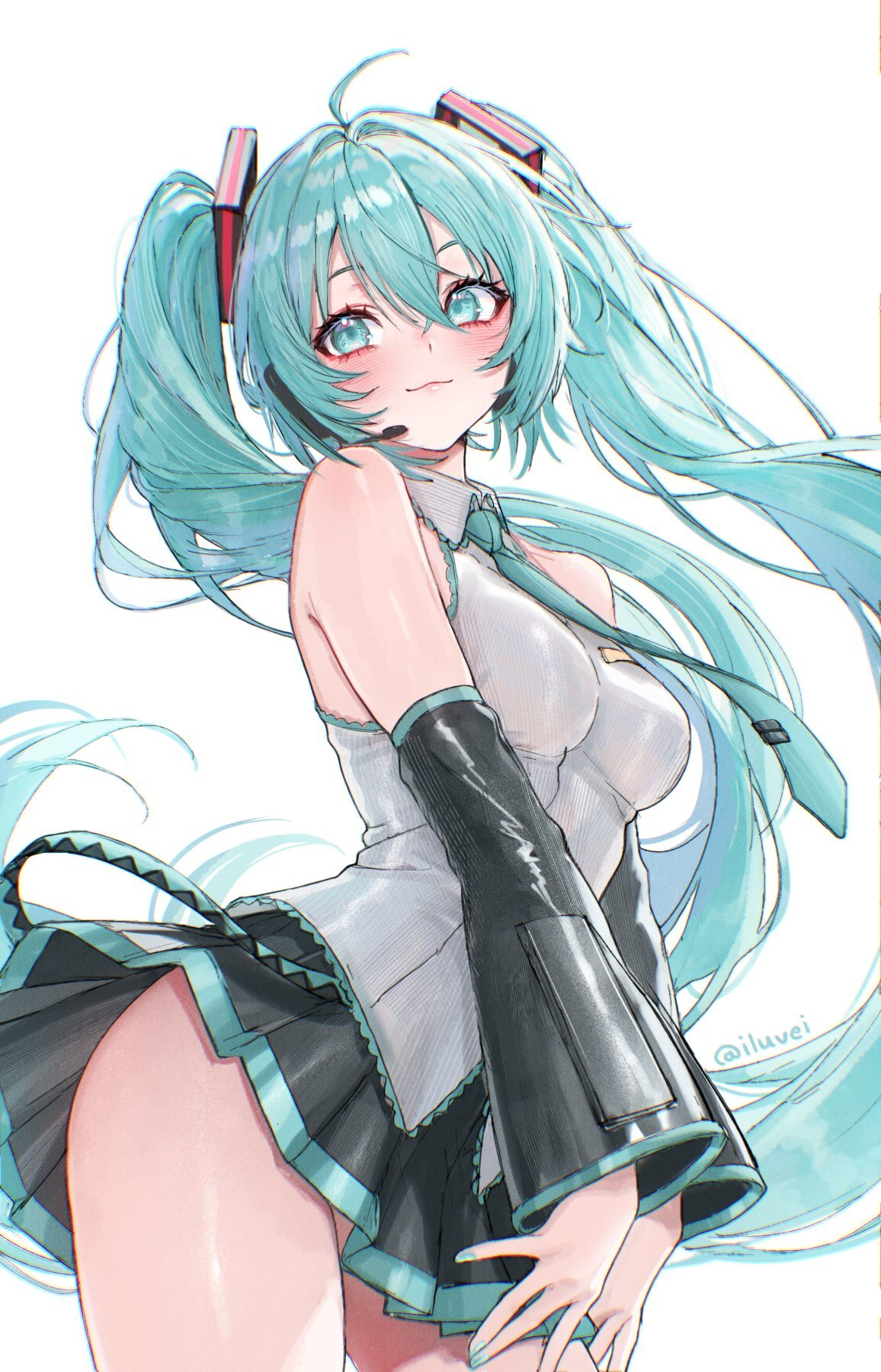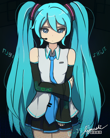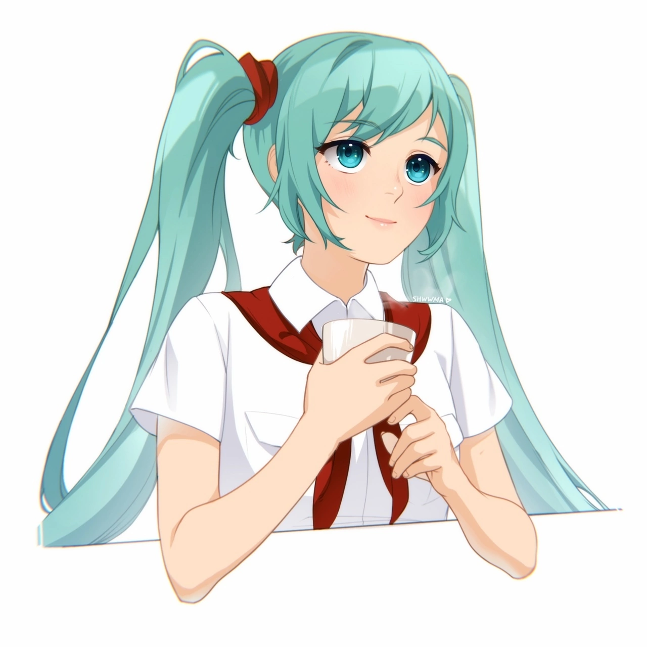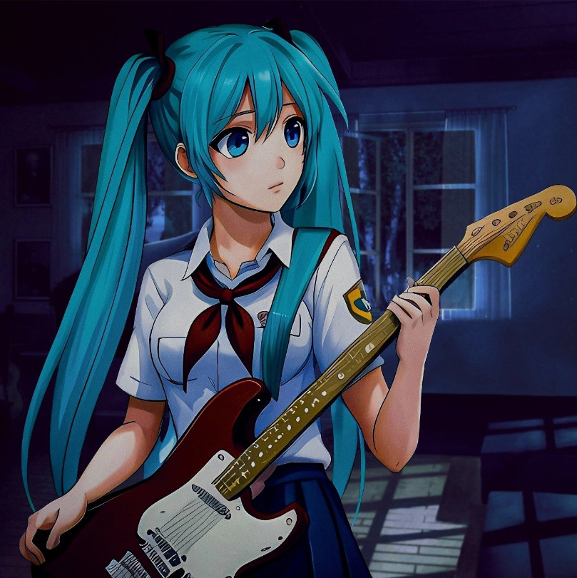 Что мы знаем о Мику? 1. Это вокалоид, и значит она поёт. 2. Внешность - это мятно-голубо-зеленая гамма и волосы убранные в сигнатурные хвостики. 3. Играет на гитаре (возможно и других музыкальных инструментах.