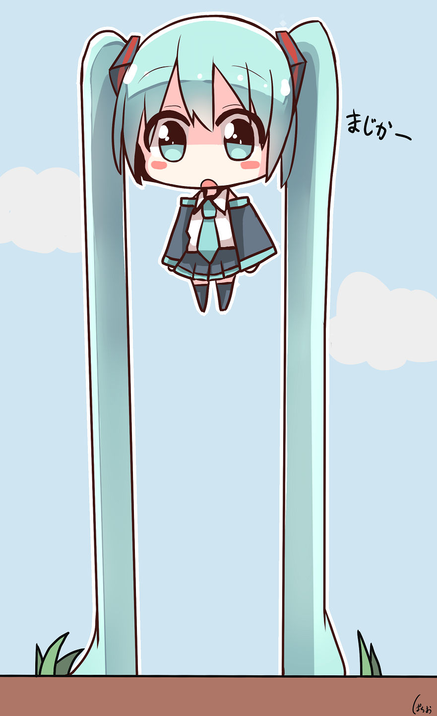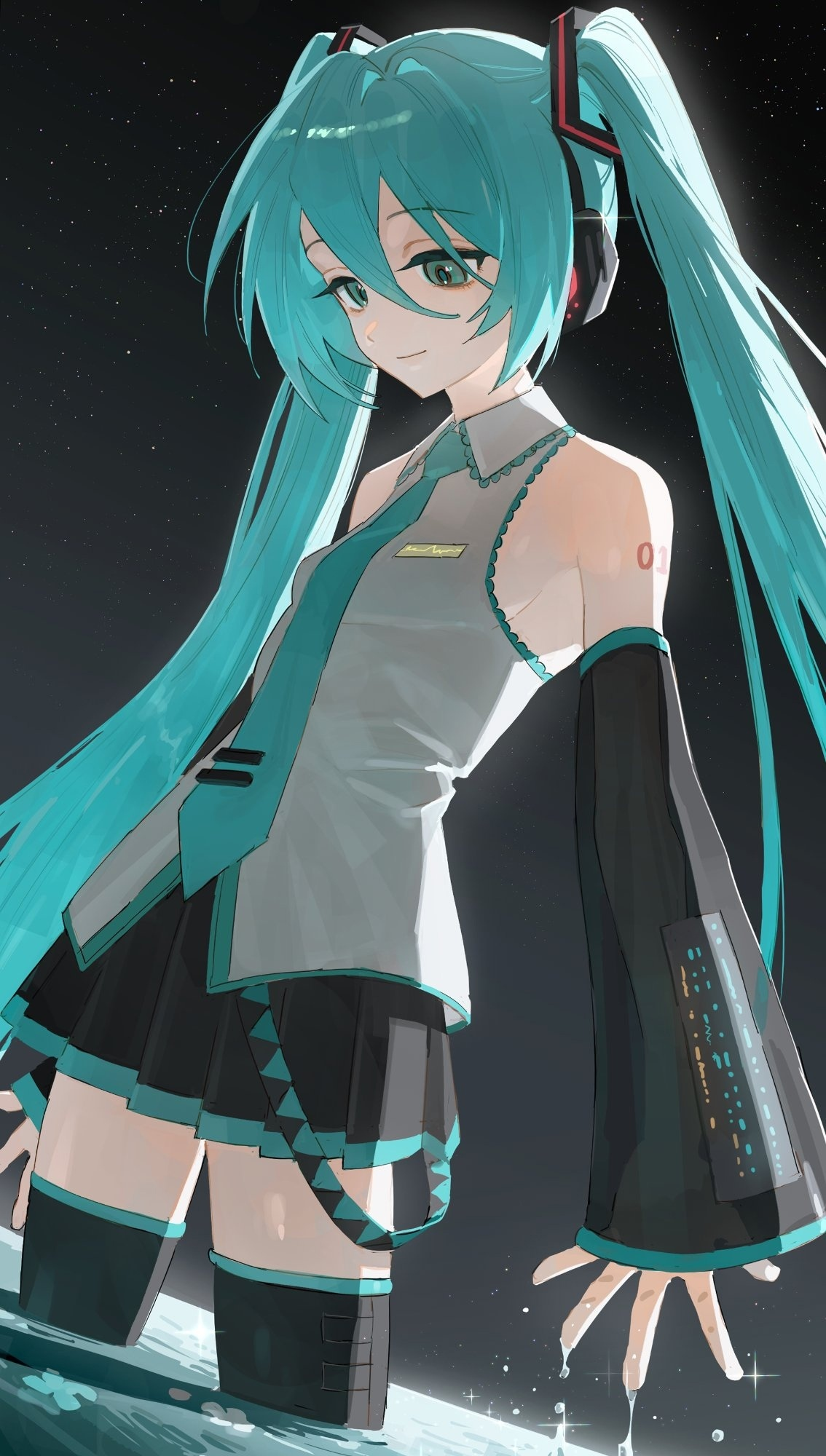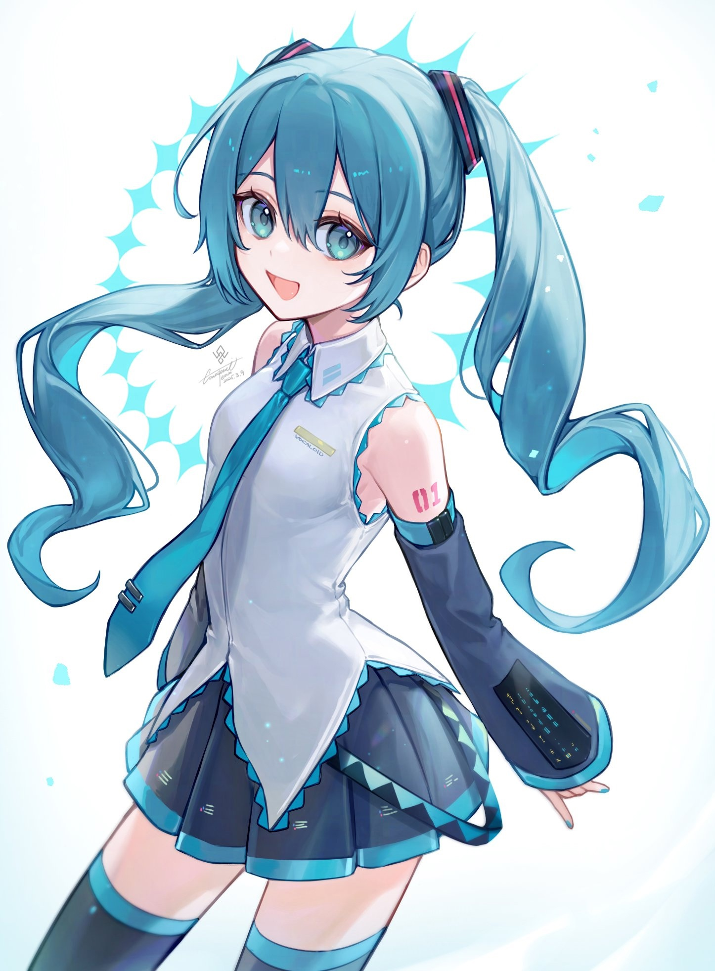 Что мы знаем о Мику? 1. Это вокалоид, и значит она поёт. 2. Внешность - это мятно-голубо-зеленая гамма и волосы убранные в сигнатурные хвостики. 3. Играет на гитаре (возможно и других музыкальных инструментах.