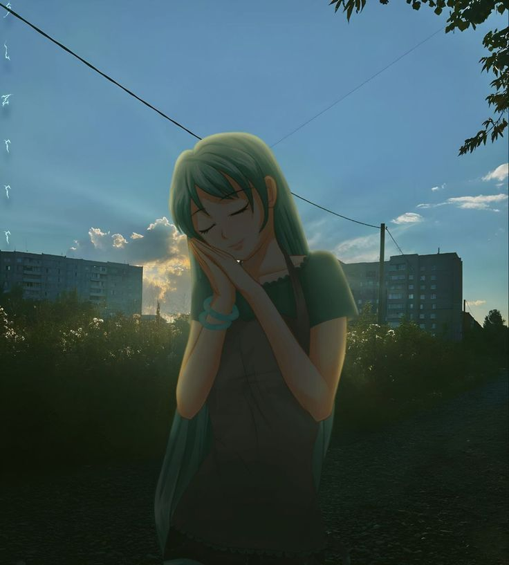 Я заныл как последняя сука до ручья слез из правого глаза, такая концовка нахуй ( Чертов процессор в 7ДЛ ) , как на 6 день Микуська уезжает в Японию, Семён как дурак многое не успел сказать, как итог, он понимает что ему ничего не интересно в жизни, полная апатия, он понял что возможно больше никогда не увидит её, но ошибки не исправить, она уже там, в Японии, строит дальше свою карьеру, и когда Семён попадает в свой мир он тщетно пытается воссоздать её голос, включает разные песни, а затем и Мику таинственным образом находит его по скайпу, созваниваются, общаются, но вот ведь не задача.. Семён прекрасно понимает что больше никогда её не увидит, игра окончена, вставьте душу, ваша неделя в лагере превратилась одновременно в приятные воспоминания и повод вскрыть себе вены.. Я так хочу закурить от этого пиздеца но не могу, сигареты закончились, а магаз закрыт... Почему я такой сентиментальный в свои 21...