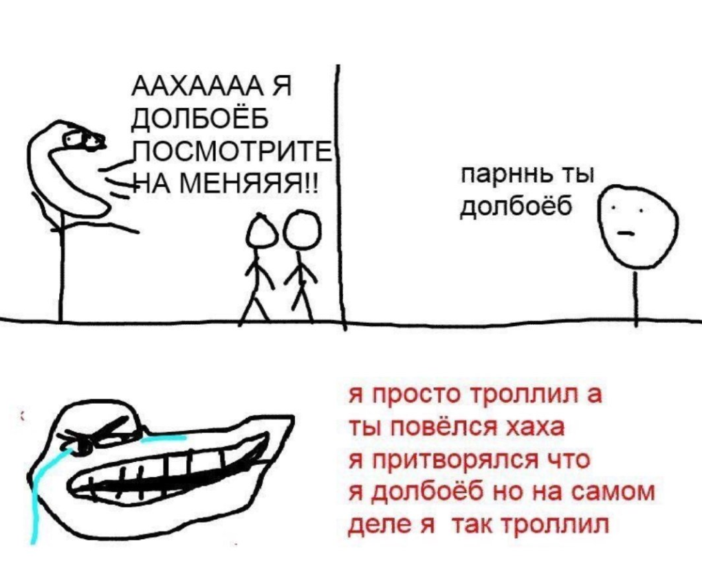 Бляяя, чуваки, я напоминаю – 80% треда это один человек Братан, объясни, в чём прикол тактики создания иллюзии видимости поддержки твоих высеров в АЛИСОтреде? Я эту хуйню читаю и у меня создаётся ощущение, будто ты уже настолько оторваный от реальности шизоид, что отвечаешь самому себе даже не лулзов ради, а ради чего-то, ведомого лишь одному тебе. Самое охуительное, что я не в первый раз уже замечаю диалоги в манере спора, условно >Алиса хуйня, Лена топ >Пошёл нахуй алисофажный попуск, Лена топ >Сам пошёл нахуй алисофаг ебаный Мне кажется, что если в треде не останется никого кроме тебя, то ты даже не заподозришь