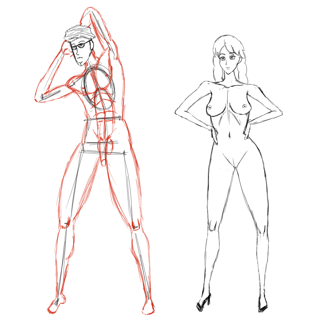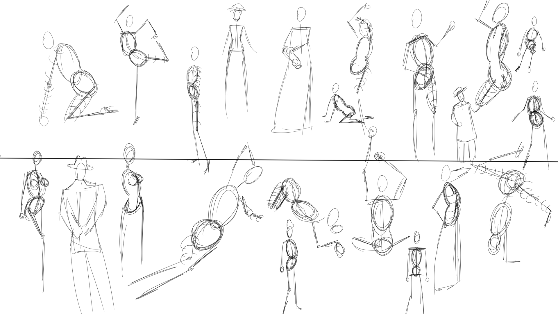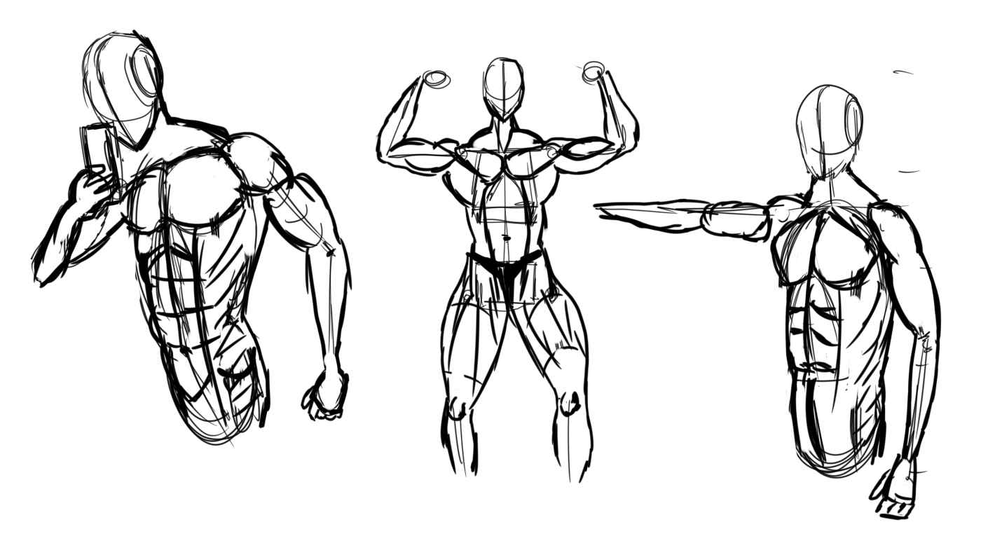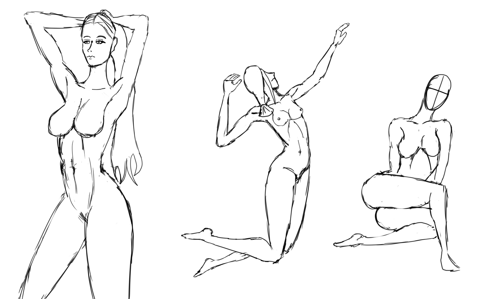 > Я так понимаю, каждое из этих действий это отдельное упражнение и имеет место быть, но меня разрывает от этого. А тут целиком все зависит от твоего желания, что именно ты хочешь подтянуть. Я например сперва набрасываю два круга, для обозначения массы грудной клетки и бёдер, а потом от них пляшу. Ты сам себе ставишь правила. Хочешь рисовать динамические позы, тогда добавляй линию движения и строй все вокруг нее. Я предлагаю начать с простого и работать только с изгибами тела, даже если получатся кривые уроды. Тут важно отработать навык вести линии любой кривизны, а не глазомер развивать.