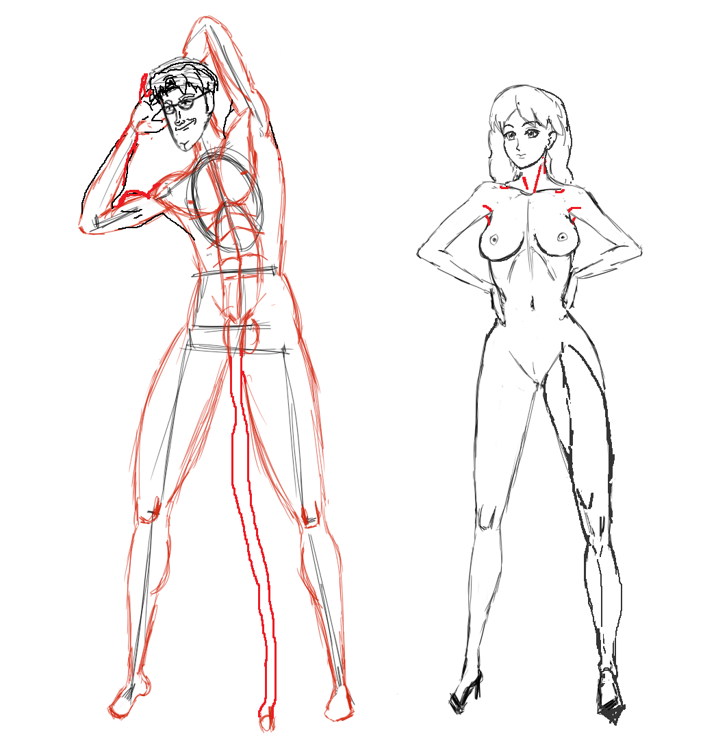 >>1219613 Ты очень плохо себе представляешь формы, которые собрался рисовать. Они все объёмные и надо бы их хорошо представлять по отдельности, а уже потом собирать в единое целое. Пропорции туловища. Лучше всего их условно разделять на 2 большие части - от лобка до талии и от талии до ключиц и плеч. Направляешь соски куда-то совсем не туда, в связи с первой причиной. Форма мышцы жопы в виде бабочки, а не в виде шара.