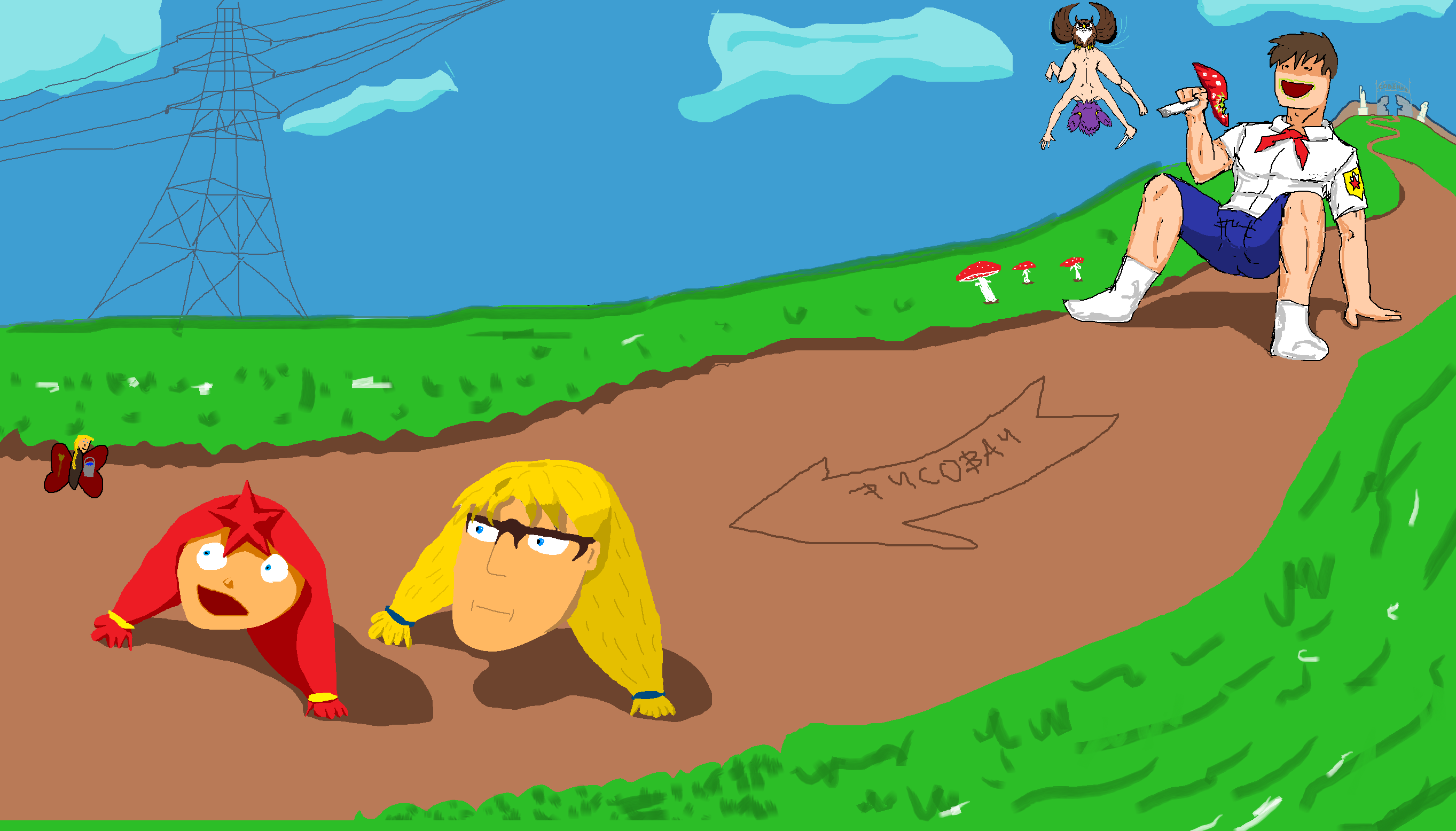 >>1213578 Дорисуй пионеров на выбор вроде Электроника, Шурика, Семёна или Толика на картах перед Алисой. Может протягивающие бутылку столичной. Ну и в целом просто креативь.