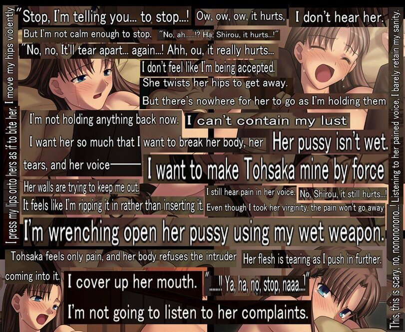 Вот вам этот шедевр пивия: label alt_uvao_hentai: scene black with fade play ambience ambience_forest_evening fadein 4 pause(3) scene bg ext_path_night with dissolve2 "Уже имеющегося хватило для того, чтобы помимо воли на губах появилась улыбка, глупая, счастливая, полувлюблённая." me "Я сча…" "Начал я, ступая на тропинку, в самом конце которой бесновались под странную музыку на площадке пионеры." "И не договорил." stop ambience fadeout 3 scene black play sound sfx_clench2 play music music_7dl["please_stop_it_mastered"] fadein 3 "Кто-то очень аккуратно схватил меня и с удивительной силой, фактически подняв над землёй, затащил в кусты." with vpunch "Я пытался брыкаться, но этим вызвал лишь смех моего похитителя." "Странный смех, крайне специфический. Я никак не мог определить по голосу, кто это мог быть." "А главное — зачем меня похитили." scene $ renpy.show("ext_path2_night", what = Notch("ext_path2_night")) with fade me "Эй, ты что делаешь?" "Нет ответа." "Я попытался дёрнуться ещё раз, но меня с нечеловеческой силой развернули, усадили спиной к дереву." with vpunch "Мгновение спустя я ощутил чьи-то холодные пальцы на своей шее." "Ремешок на шортах ослаб как будто сам." me "Ты что собираешь…" "Пальцы на шее сомкнулись лишь чуть-чуть, но этого хватило, чтобы голос отказал полностью." "Я снова рванулся. Попытался размахивать руками." th "Что он собирается делать?!" play sound sfx_punch_medium "Я ударил ногой куда-то в темноту, попал в мягкое — раздался приглушенный выдох." with vpunch play sound sfx_punch_washstand "Но тут же получил удар по бедру такой силы, что нога отказалась мне служить." with flash_red play sound sfx_head_heartbeat "Шорты поползли вниз, одна рука убралась с горла, и, судя по ощущениям, развязывала мне галстук." "Миг — и оказался стреножен собственными шортами, связан собственным галстуком." "Задравшаяся рубашка оказалась на голове так, что был полностью лишён обзора." "И, судя по всему, процесс только начинался." "Я не мог кричать, не мог вырваться, не мог сделать ровным счётом ничего." "Всё, что мне оставалось — это ждать, что будет дальше." "Но не просто же так меня связали?" dreamgirl "Выкуп потребуют, ага." dreamgirl "Или оприходуют сейчас по-быстрому." th "Но это же…" "Я зарычал, забил ногами, пытаясь вырваться и отползти." "Мне совсем не нравилась мысль, что сейчас меня…" "Но что я мог поделать против такой силищи?" "Ровным счётом ничего." "Потому и на вторгшийся туда, где ему находиться не полагалось, чей-то тонкий палец я мог выдать лишь сдавленное шипение." "Ещё один." "Я замер в ужасе, ожидая, когда меня перевернут на живот, и…" "Но шло время, а переворачивать никто меня никуда не собирался." "Уже плюс." "Опуская подробности, по его душу только что флюгегехаймен не появился." "Хотя было довольно близко к тому." th "Значит, никто меня насиловать не собирается?" "С надеждой подумал я." "Тут над головой снова послышался этот странный смех, прозвучало напрочь непонятно:" voice "Всё равно ничей." "И до меня дошло, что это…" "В этот момент палец не там, где надо, нащупал какую-то точку, и организм отозвался помимо моей воли." "Мой собственный организм предал меня!" "И тут же был употреблён по прямому назначению." "Кто-то сверху резко выдохнул, скрипнул зубами." "И стало тепло, влажно и тесно." th "Девушка?!" th "Да что за девушка может так просто скрутить одного из самых крупных пионеров в лагере?" "Я не знал." "Тем более, что и палец из меня наконец убрался." "Я всё равно не мог ничего поделать. Только лежать и считать фрикции." "Дикие, злые, больше похожие на драку, чем совокупление." "А учитывая, что у меня биологичес
