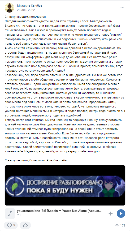 Знаю, что этот тред на доске лета самый активный, поэтому спрошу сюда: какой мод (или рут 7дл) посоветуете на вечер-ночь? Желательно с атмосферой зимы. Хочу один вечер перед новым годом посвятить датфилу и зарядиться надеждой из разряда "завтра будет лучше, чем вчера". Всех с наступающим!