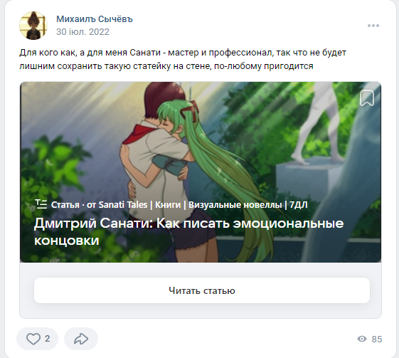 >>1225098 >самостоятельную новеллу от амбалов. А ты задонатил на рав4 чтобы амбалы тебе показали свою самостоятельную новеллу? >>1225100 >>1225104 От темпа выпал. Интересно, насколько там всё нечитабельно, потому что на вычитку и редактуру там времени просто не остаётся. А вот второе ожидаемо, т.к уже было подобное, с тем же Дорожным Димоном.