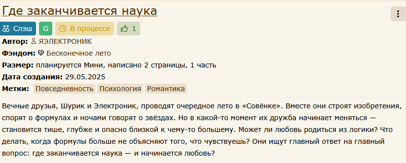 Автор возобновил работу над фанфиков "Бесконечный Стикс". Переименовал его в "Бесконечное лето. Круги на воде". Пионерское время проходит достаточно мягко, в конце недели автор ставит боевку с бандитами, демонами, небом, Аллахом. А вот бэкграунд у героев мама не горюй. https://ficbook.net/readfic/9718508