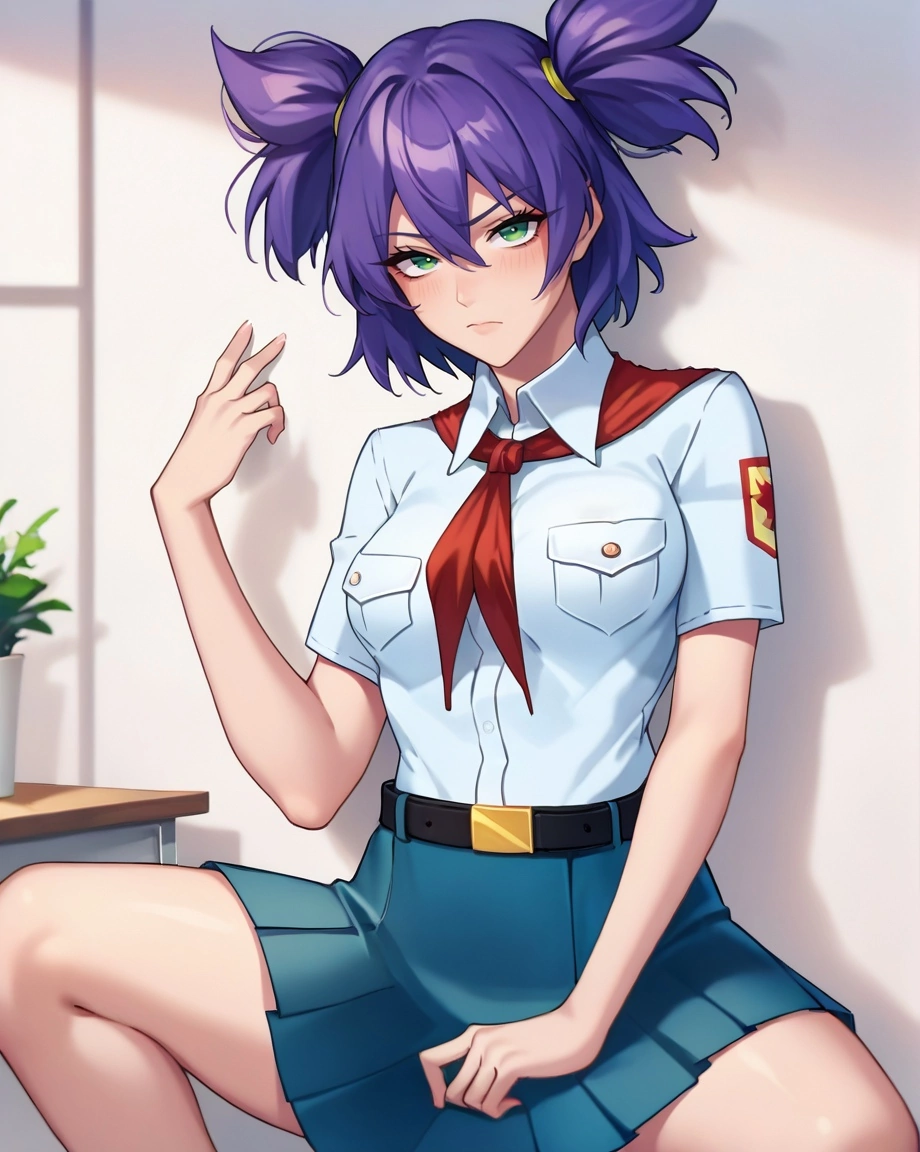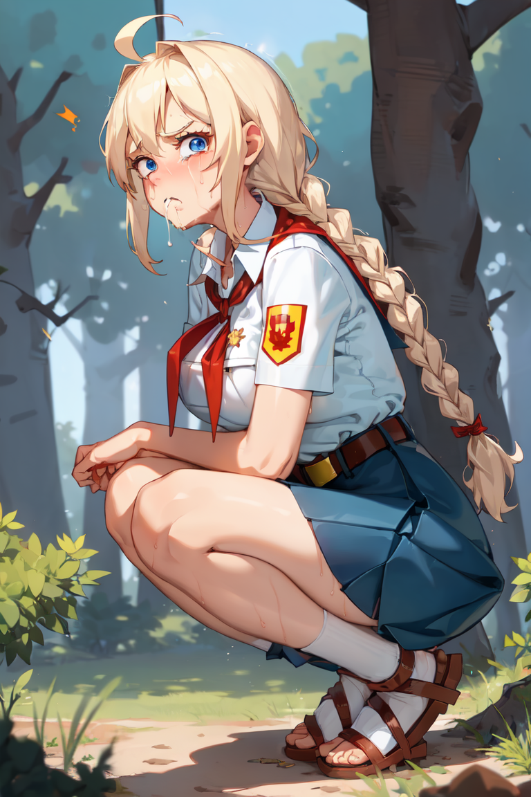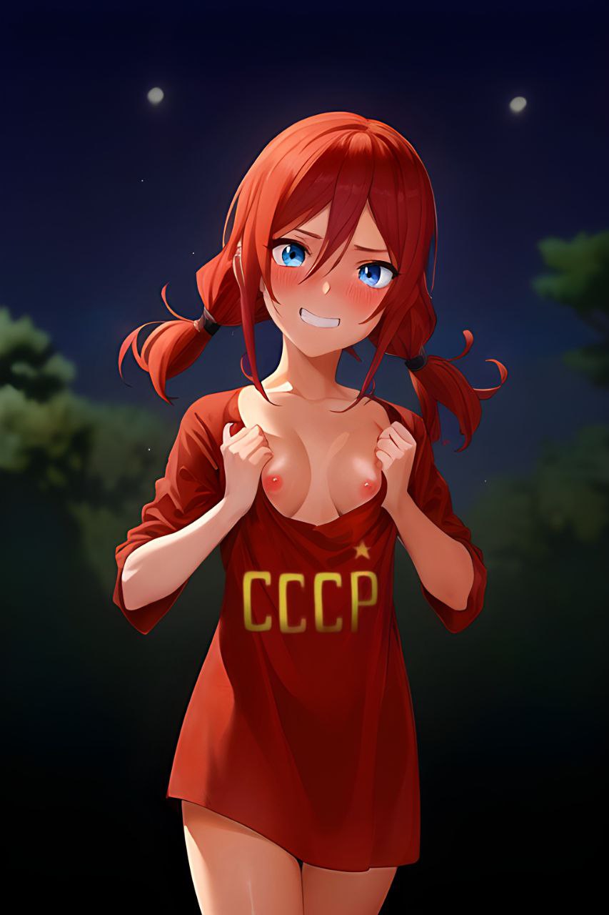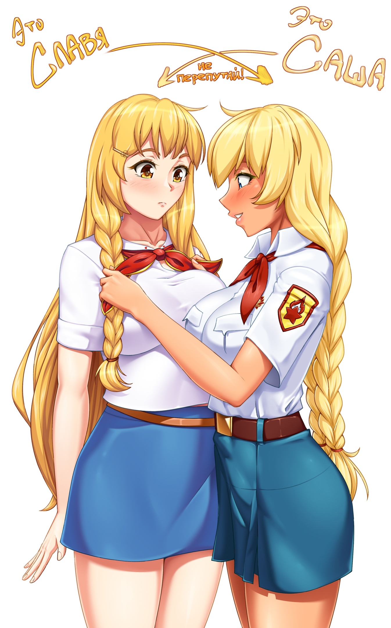 - Ну, ммм, здесь уютно, знаешь... - робко произнесла музыкантка, совершенно растеряв обычную словоохотливость. Славя засмеялась и шумно вдохнула воздух через нос: -Привыкнуть надо. Если станет совсем не очень, лучше скажи. Теловой удар штука скверная. Мне-то что - здесь, считай, прохладно, я тебя жалею. - С-спасибо. - Мику осторожно подняла голову и посмотрела на Славю. Та села поближе к ней и в меру деликатно, но с интересом рассматривала спутницу. Увидев красивый и крупный бюст Слави, всегда так явно обозначаемый пионерской формой, Мику неожиданно и внезапно стало неловко за свою, совсем небольшую, способную поместиться в ладошке грудь.