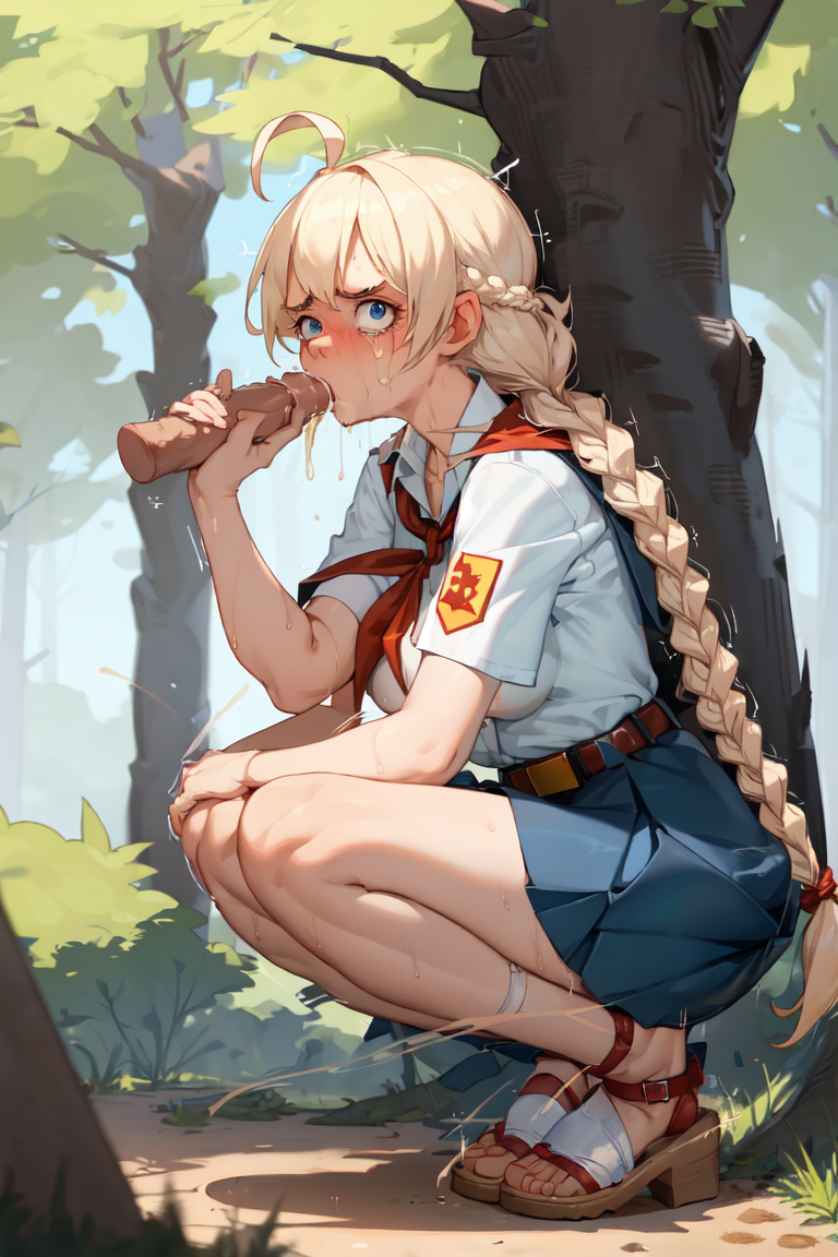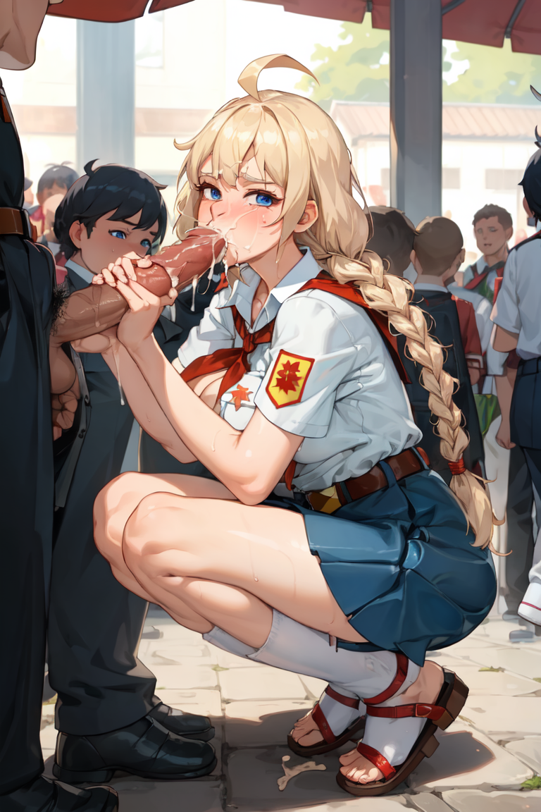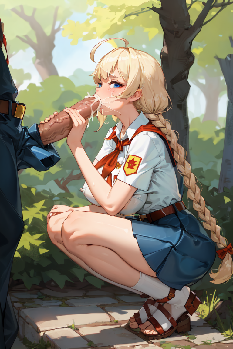 Это дрочерская фантазия. В оральном сексе Алиса на последнем месте. Даже Женя и Мику обходят ее, не говоря уже о Лене или Слави. Алиса в рот возьмет только после свадьбы, по ее зажатости чуется. А в лагере - только водкой поить, жопу массировать, соски теребить