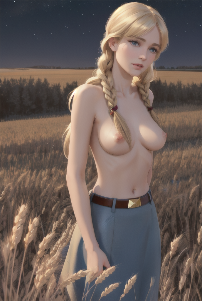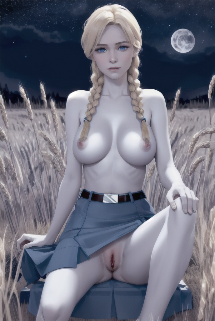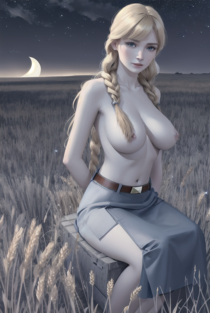 /ночной теплый ветер плавно покачивал косы Слави, пока маленькие капельки пота, искрящие в свете луны, стекали по ее королевским сиськам и собирались в одну крупную на ее напряженных розовых сосках/