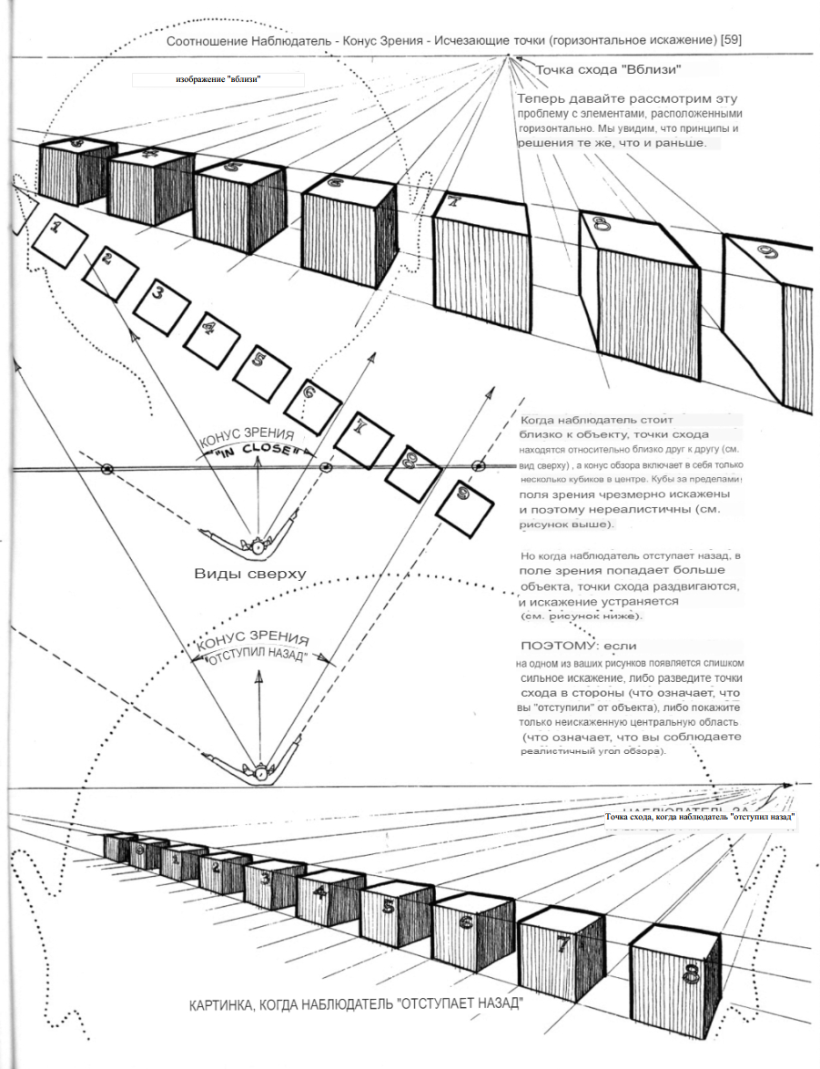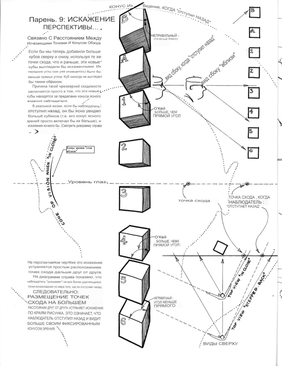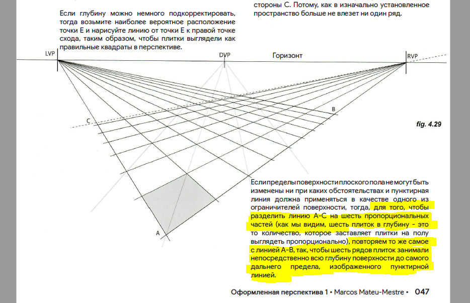 >>1234623 >Можно типа поделить линию на равные части по законам перспективы, а вот как поделить другую сторону тоже НА ОПРЕДЕЛЕННОЕ КОЛИЧЕСТВО ЧАСТЕЙ? Тем же способом? Тебе потребуется сделать тоже самое, зеркально отразив свои воздействия. >Определили квадрат на глаз А вот и нет! Ты делишь квадрат не просто глазом, а глазом и нарисованной справа зелёной линейкой в пересечении делимой плоскости от жёлтых лучей до противоположной точке на горизонте. То есть одинаковый размер для всех искажённых перспективой квадратов задаётся именно через зелёную линейку. >>1234624 Кубов тут нет, только двухмерные квадраты с диагоналями.
